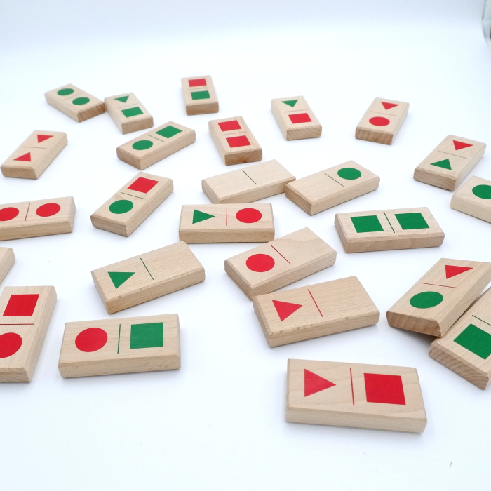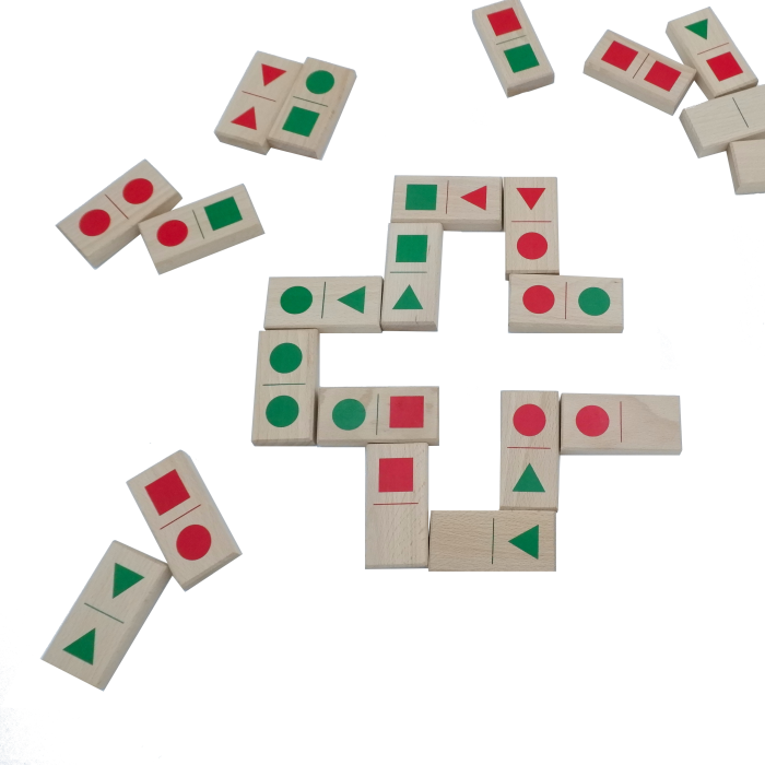 Edukacyjne domino to wspaniały sposób na połączenie zabawy i nauki. Tak jak nakazuje tradycja składa się z 28 klocków, ale zamiast kropek każdy prostokąt dzieląc się na dwa kwadraty zawiera kolorowe figury geometryczne. Dzięki temu nasze drewniane domino może wprowadzić pociechy w świat różnych kształtów i nauczyć je nazywać i rozpoznawać. Ta drewniana zabawka ma swój rodowód w średniowieczu i przez stulecia bawiąc uczy logicznego myślenia, wyobraźni i kreatywności. W Europie pojawiła się dzięki włoskim misjonarzom, którzy już 300 lat temu docenili jej walory. Ta zabawka z drewna rozwija bowiem koordynację wzrokowo-ruchową i małą motorykę. Drewniane klocki uczą przewidywać i planować. To zabawka dla dużych i małych, to pokryte sitodrukiem dzieło krajowych rzemieślników, powstałe w z drewna z polskich lasów. Doskonałe wykończenie i wysoka jakość to gwarancja dobrej zabawy.