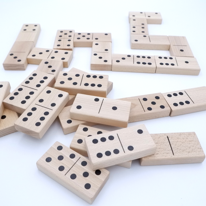 Jak długi łańcuch z drewnianych klocków domino potrafi ułożyć Wasze dziecko? Drewniane domino, to międzypokoleniowa drewniana zabawka. Czy wiesz, że tradycyjne domino pochodzi z Chin, ale mało przypomina dzisiejszą wersję. Nasze domino tradycyjne pojawiło się w Europie w połowie XVIII wieku we Włoszech i Francji. Do Anglii i innych krajów dotarło przywiezione przez francuskich więźniów. Istnieje 12 najpopularniejszych gier, do których używamy klocków domina. Zabawa nim uczy jednak przede wszystkim logicznego myślenia, a w przypadku młodszych zapoznaje z cyframi. To ogólnorozwojowa zabawka, która pozwala wspólnie spędzać czas wszystkim członkom rodziny. Wykonana z polskiego drewna przez polskich rzemieślników jest ekologicznym produktem wspierającym polskich rzemieślników. Ręczne wykonanie i naniesiony sitodruk gwarantują bezpieczeństwo dzieciom.