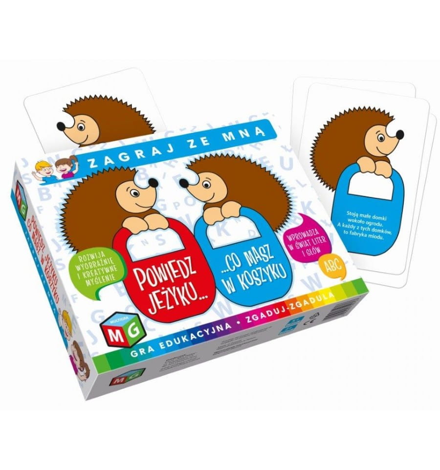 Im więcej kreatywnych zabaw od najmłodszych lat, tym lepiej dziecko się rozwija. Nic nie pomaga w tym lepiej niż gry i zabawki edukacyjne. Zaspokajają ciekawość świata, uczą nowych rzeczy i utrwalają już zdobytą wiedzę. Multigra - “Powiedz jeżyku, co masz w koszyku” to właśnie jedna z takich gier - uczy poprzez doskonałą zabawę. Dzięki temu wiedza wchodzi do głowy szybciej i przyjemniej, niż gdyby uczyć się z przymusu. Zasady gry są bardzo proste: trzeba rozwiązywać krótkie zagadki w formie wierszyków. Dzięki temu dzieci doskonale się bawią i rywalizują ze sobą w prosty sposób, a przy tym uczą się nowych rzeczy. Gry edukacyjne tego typu pomagają rozwijać wyobraźnię i kreatywne myślenie, a także poszerzają słownictwo. W nienachalny sposób zachęcają do główkowania. Gra to przyjemny sposób na spędzenie czasu w rodzinnym gronie - świetnie bawić będą się zarówno dzieci, jak i dorośli. Gra przeznaczona jest dla dzieci powyżej 5 roku życia.