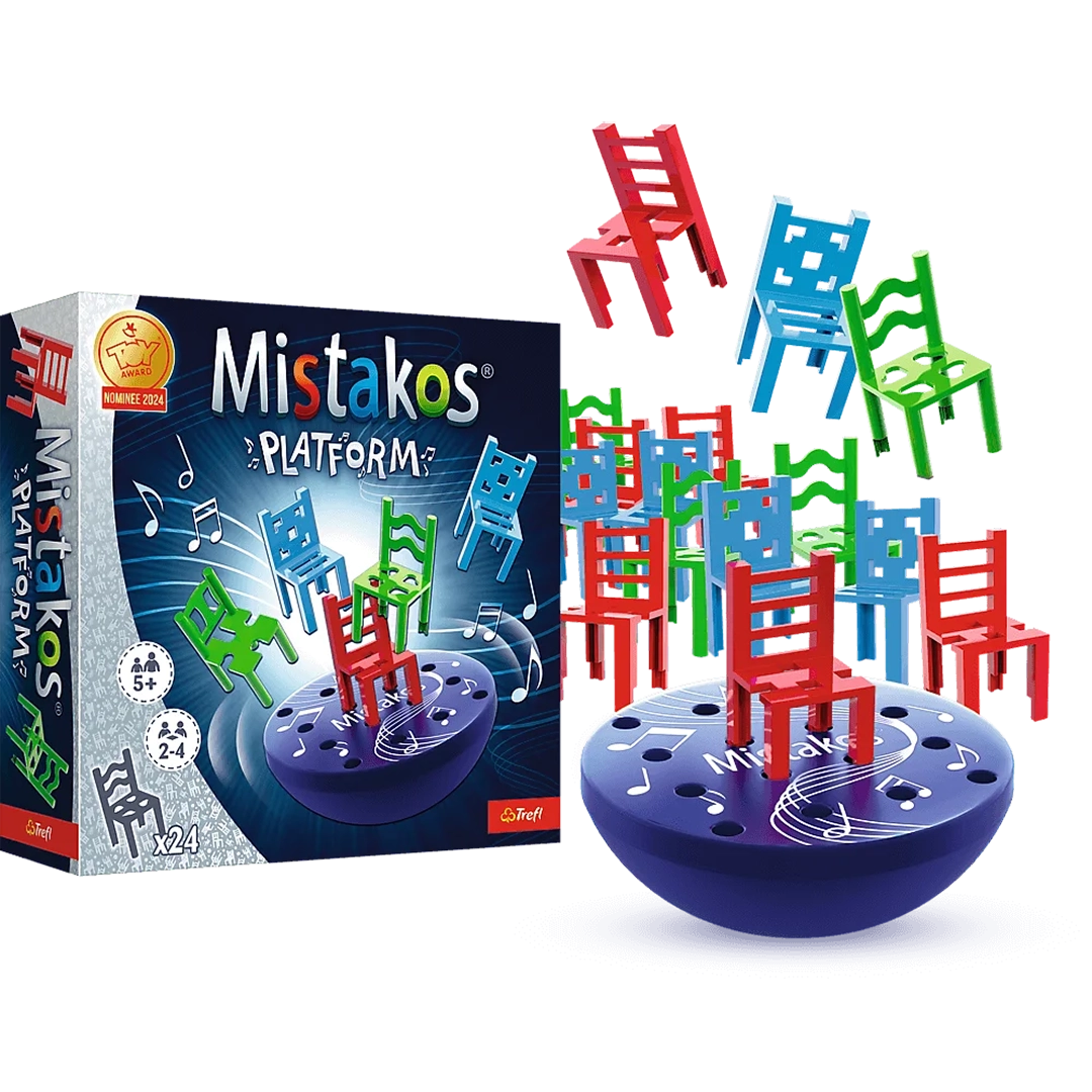Mistakos Platform to ekscytująca gra zręcznościowa, która wymaga od graczy precyzji, spostrzegawczości oraz planowania strategicznego. Rozgrywka polega na układaniu krzesełek na platformie tak, aby cała konstrukcja była stabilna i nie przewróciła się. To doskonały sposób na rozwijanie cierpliwości i koncentracji, jednocześnie zapewniając mnóstwo śmiechu i zdrowej rywalizacji. Gra przeznaczona jest dla osób w wieku od 5 lat, dzięki czemu świetnie sprawdzi się zarówno w gronie dzieci, jak i dorosłych.