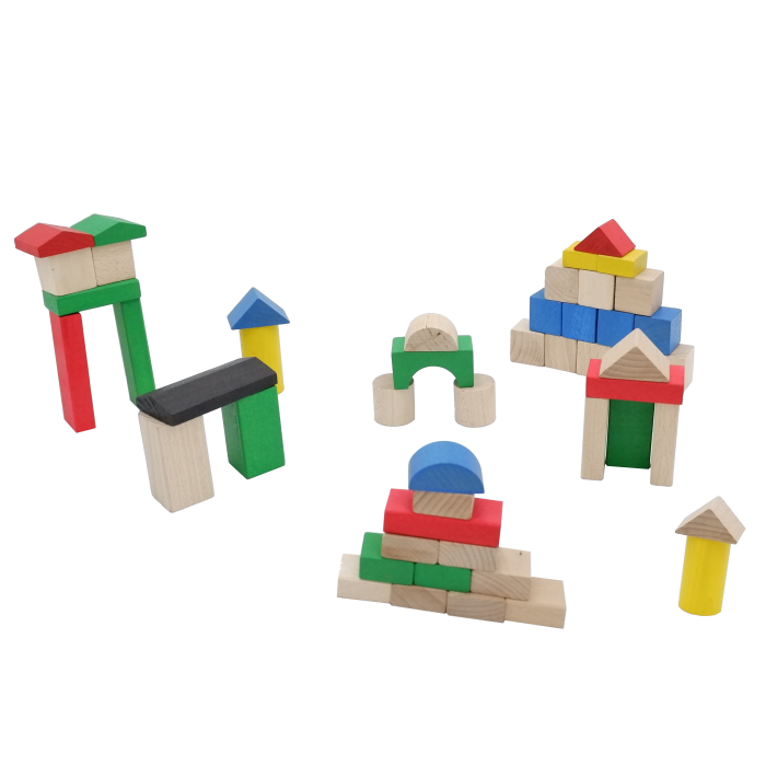 Klocki drewniane dla dzieci KONSTRUKCYJNE KOLOROWE 50szt. 3+
