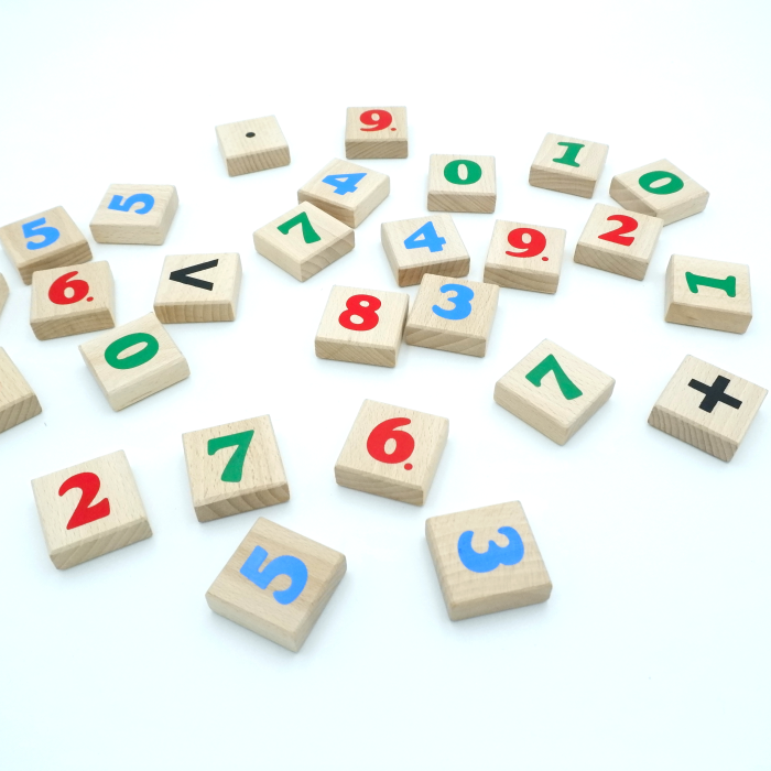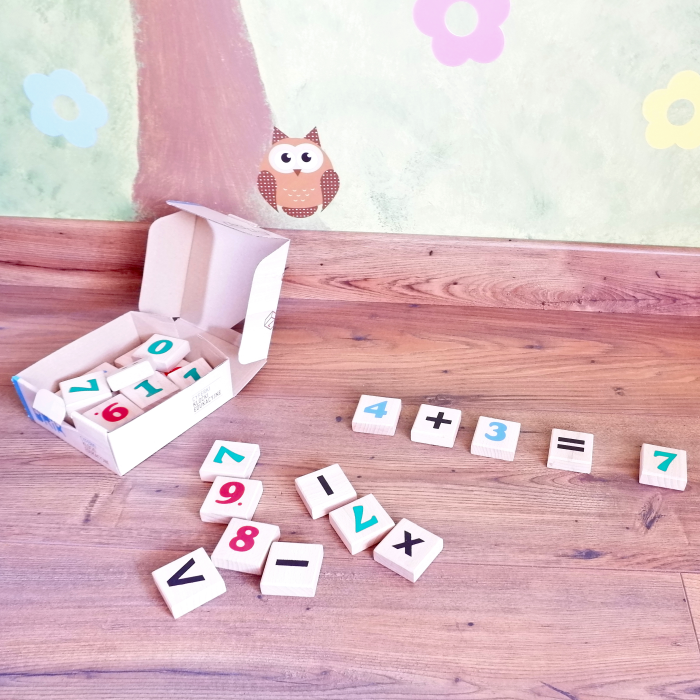 Zestaw 27 pięknych drewnianych klocków o gładkim wykończeniu. To prosta drewniana zabawka zachęcająca do poznawania cyferek, ale także pomoc matematyczna służąca do nauki podstawowych działań: dodawania i odejmowania, mnożenia i dzielenia. Zachęca do zręczności manualnej oraz koordynacji ręka-oko. Drewniane edukacyjne cyferki to pomoc szkolna, ale także świetna zabawa. Czy potrafisz wymyśleć jak jeszcze wykorzystać drewniane cyferki? Może oznaczycie nimi stworzone budynki? Albo zaznaczycie ilość autek i lalek w pokoju? Czy też określicie wiek domowników i ilość zjedzonych słodyczy? A może będziecie odliczać czas do ważnego wydarzenia? Cokolwiek podpowie Wam wyobraźnia ręcznie wykonane i pomalowane przez polskich producentów metodą sitodruku drewniane klocki z cyferkami będą latami służyć małym matematykom.