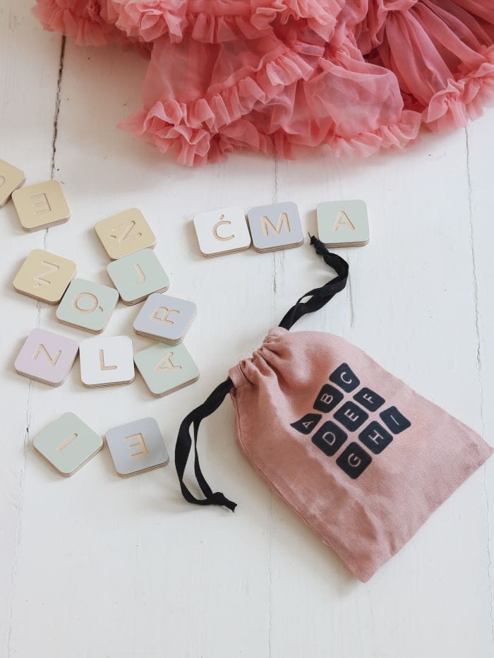 Choć wydawałoby się, że jedyne co interesuje dzieci to zabawa, nie należy zapominać, że służy ona nie tylko rozrywce, lecz także pomaga badać i poznawać świat oraz poszerzać wiedzę i uczyć się nowych rzeczy. Nauka poprzez zabawę daje najlepsze efekty, dlatego warto zwrócić uwagę, by zabawki miały mocne walory edukacyjne - tak jak prezentowane tutaj Abecadło. Mimo że można korzystać z tego zestawu na wiele różnych sposobów, służy on głównie do poznawania liter, a z czasem nawet do układania z nich prostych słów. Zawiera on 48 kolorowych klocków z literami (również z polskimi znakami) wykonanych z melaminowanej sklejki brzozowej i malowanych bezpiecznymi farbami wodnymi oraz lniany woreczek z nadrukiem wykonanym za pomocą sitodruku. By ułatwić układanie słów, najczęściej występujące litery zostały powtórzone. Zabawka wykonana z poszanowaniem środowiska posiada wiele certyfikatów (CE, FSC, EN71, OEKO Tex) i jest bezpieczna dla dzieci powyżej trzeciego roku życia.