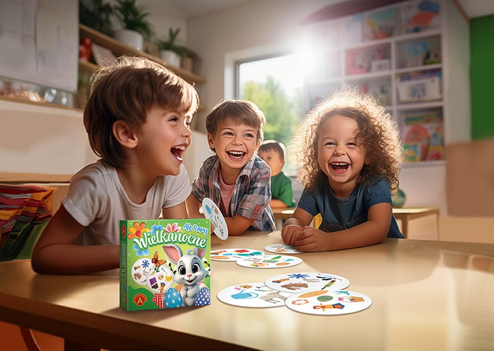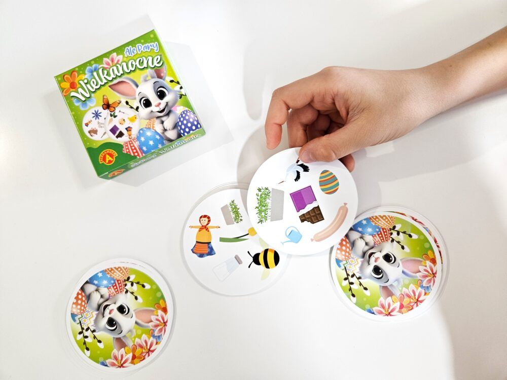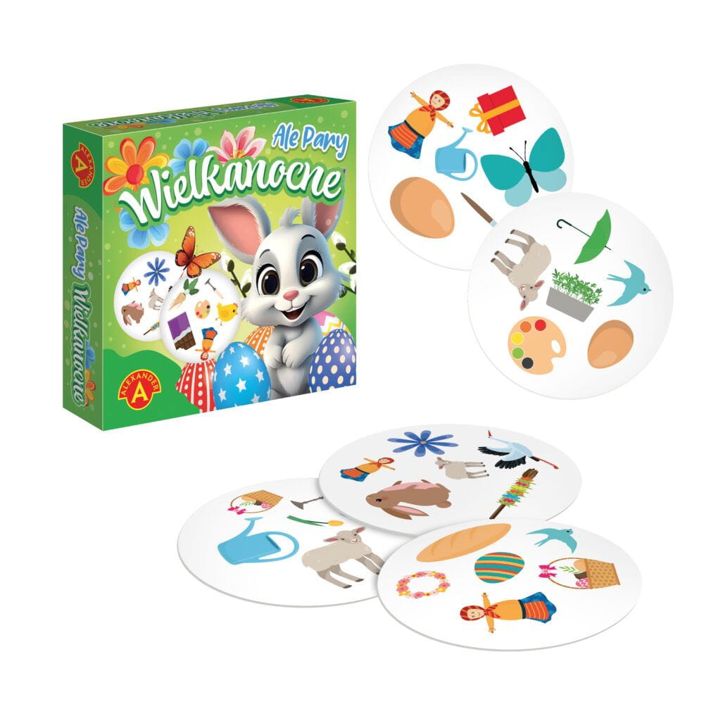 Ale Pary – Wielkanoc to szybka i zabawna gra karciana dla dzieci i dorosłych, która rozwija spostrzegawczość, refleks i koordynację wzrokową. Idealna jako gra planszowa dla całej rodziny, prezent wielkanocny lub gra imprezowa dla 2-4 graczy.