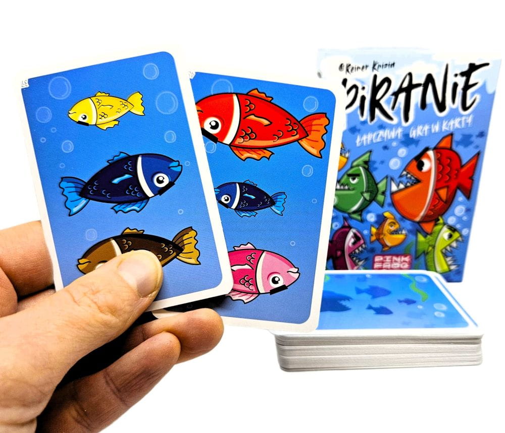Gra "Piranie" to zabawa na tempo, w której liczy się szybka reakcja i spostrzegawczość. Gracze muszą szybko różnicować karty i reagować na zmieniającą się sytuację, co dodaje grze dodatkowego elementu rywalizacji i sprawia, że każda rozgrywka jest inna.