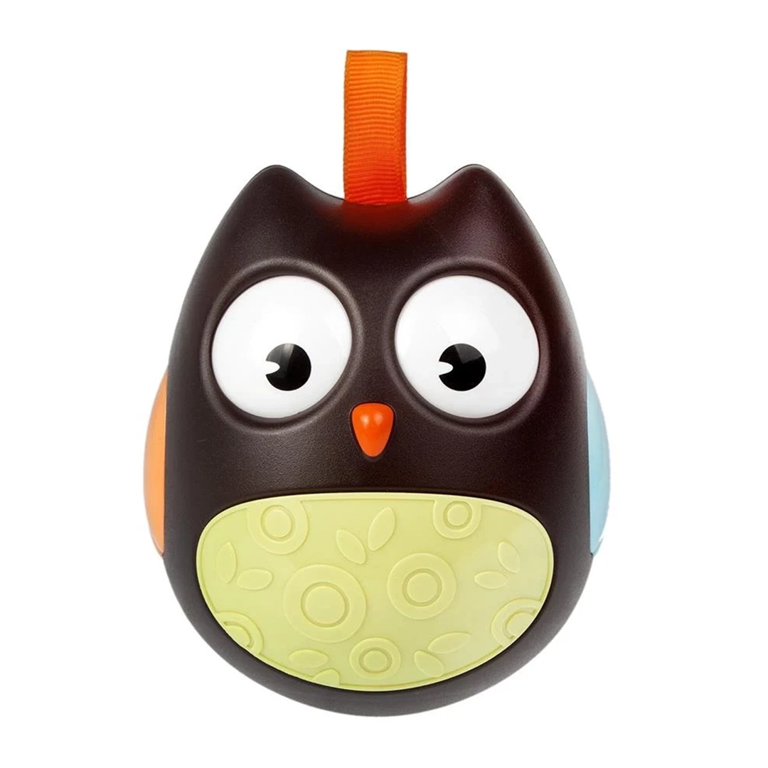 BamBam Wańka‑Wstańka Sówka to urocza, sensoryczna zabawka dla niemowląt i małych dzieci od około 6. miesiąca życia. Sówka porusza się — kiwa i buja — ale nigdy się nie przewraca. Po lekkim popchnięciu wraca sama do pionowej pozycji, co przyciąga uwagę dziecka i zachęca je do interaktywnej zabawy. Przy każdym kołysaniu słychać delikatny dźwięk dzwoneczków, a poruszające się oczka sówki dodatkowo wzmacniają efekt i stymulują zmysły.