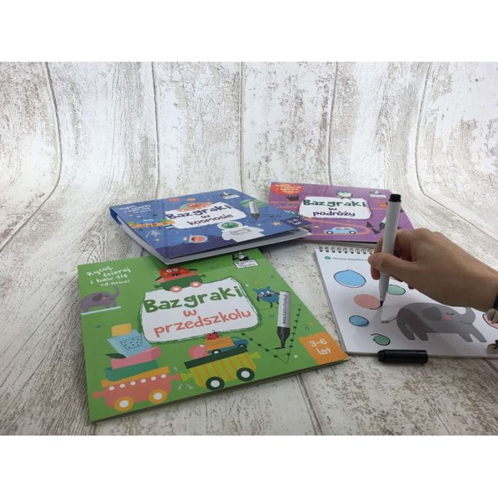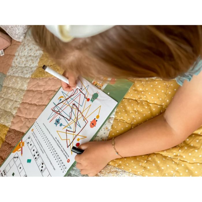 Dzięki dołączonemu do zestawu suchościeralnemu flamastrowi, odpowiedzi można zmazywać i poprawiać bez końca, co sprawia, że nauka staje się jeszcze bardziej interaktywna. Dodatkowo, wygodny, większy format książeczki sprawi, że nawet trzylatki nie będą miały problemu z rozwiązywaniem zadań.