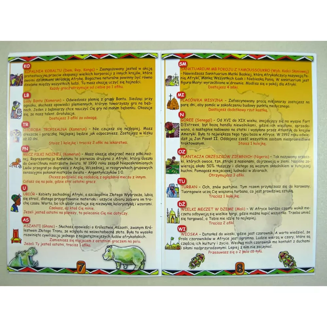 "Poznaj i pokochaj Afrykę" to gra planszowa, która zabierze Cię w fascynującą podróż po kontynencie afrykańskim, łącząc edukację z rozrywką. Ta edukacyjna gra planszowa została stworzona z myślą o dziećmi i dorosłych, pragnących poszerzyć swoją wiedzę o Afryce w angażujący sposób.