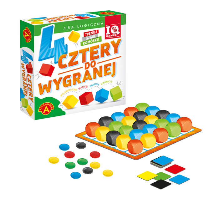 W zestawie znajdują się kolorowe klocki, tabliczki do losowania, żetony wyboru koloru, plansza oraz instrukcja, co gwarantuje pełną i gotową do natychmiastowej zabawy grę. Cztery do wygranej – gra edukacyjna Alexander to świetny pomysł na prezent edukacyjny dla dzieci powyżej 7. roku życia, który łączy naukę z zabawą.