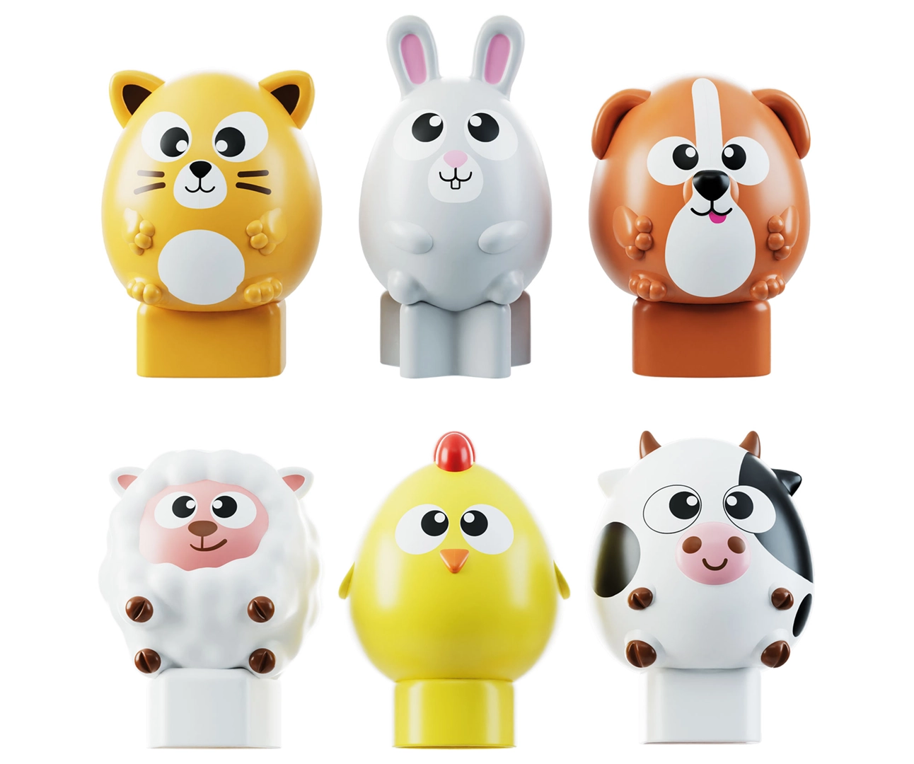 Sorter edukacyjny pozwala dziecku ćwiczyć dopasowywanie kształtów, rozpoznawanie zwierząt oraz rozwijać zdolności poznawcze. Kolorowe figurki – takie jak piesek, kotek, króliczek, kurczaczek, owieczka czy krówka – przyciągają uwagę i zachęcają do zabawy.