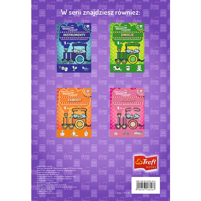 Seria "Co cztery słonie mają w wagonie" to niezwykłe książeczki, które skutecznie zachęcają dzieci do aktywnego uczestnictwa w nauce. Poprzez zabawne zadania, dziecko nie tylko ćwiczy umiejętności manualne, ale również rozwija logiczne myślenie i zdolność dostrzegania i rozumienia różnorodności świata.