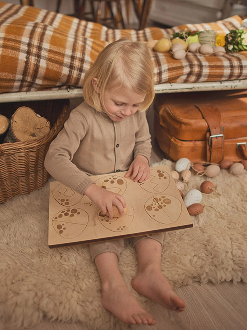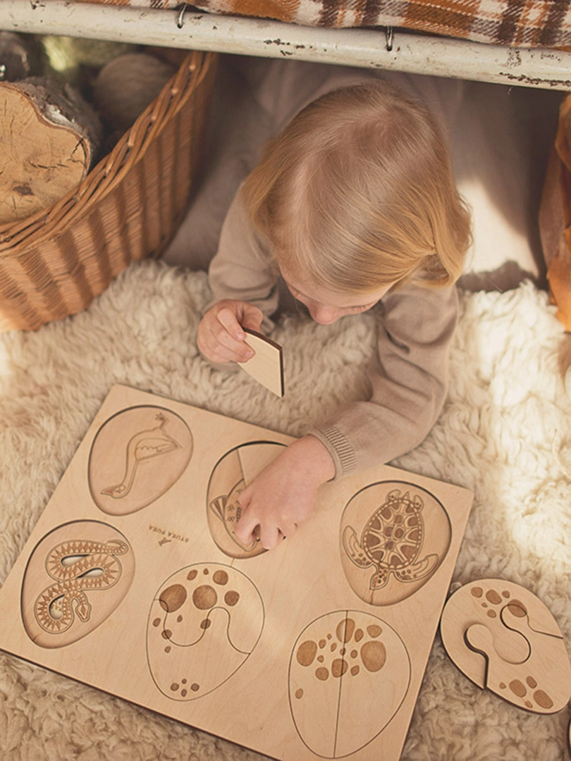 Co za jaja to puzzle drewniane stworzone przez Sounds Wood z myślą o dzieciach ciekawych świata przyrody. Ten oryginalny zestaw wprowadza najmłodszych w fascynujący świat zwierząt, które wykluwają się z jaj – od ptaków i ryb, po gady, płazy, a nawet niektóre ssaki. Dzięki układance dzieci uczą się przez doświadczenie, poznając różnorodność przyrody w sposób sensoryczny, kreatywny i angażujący.