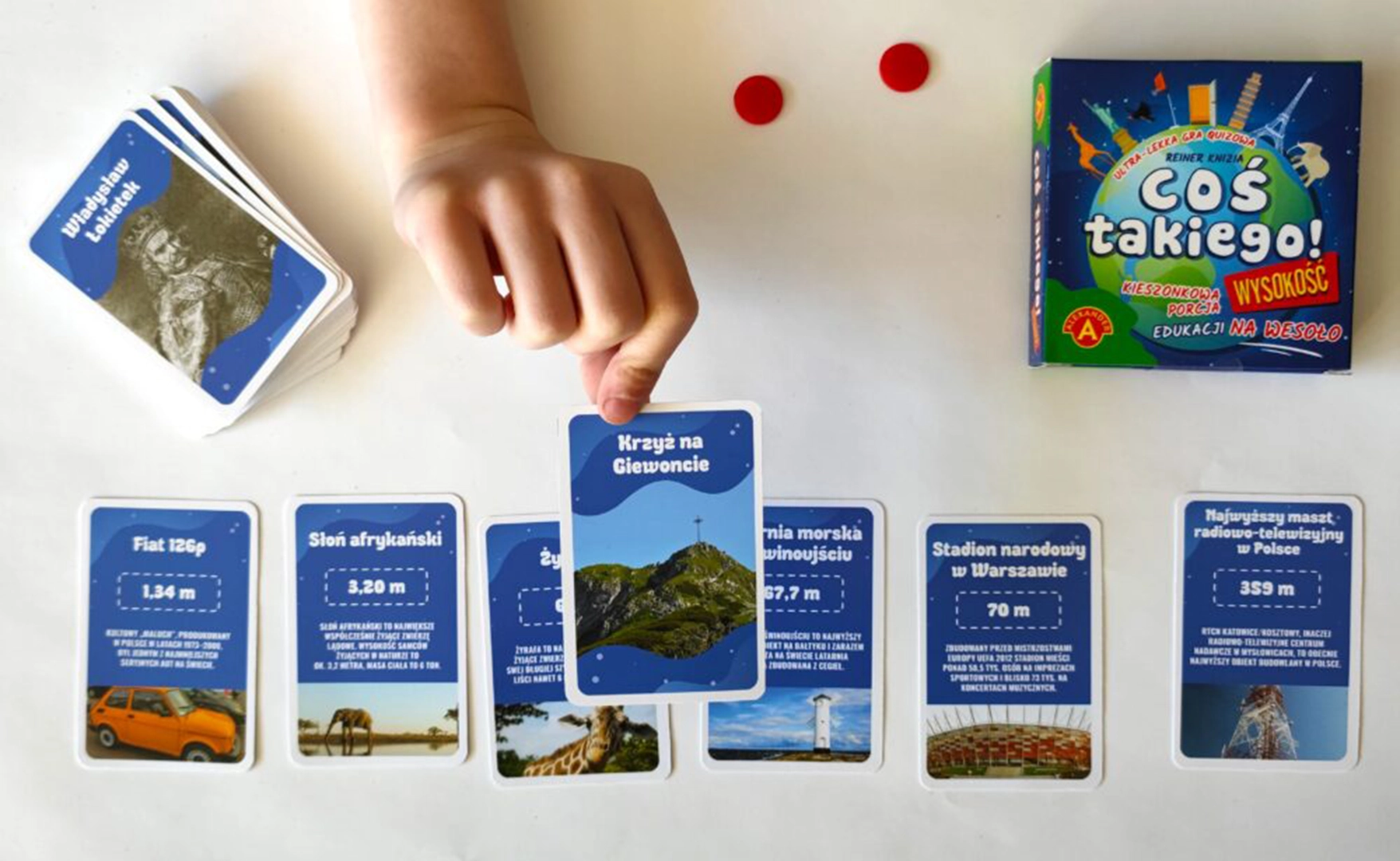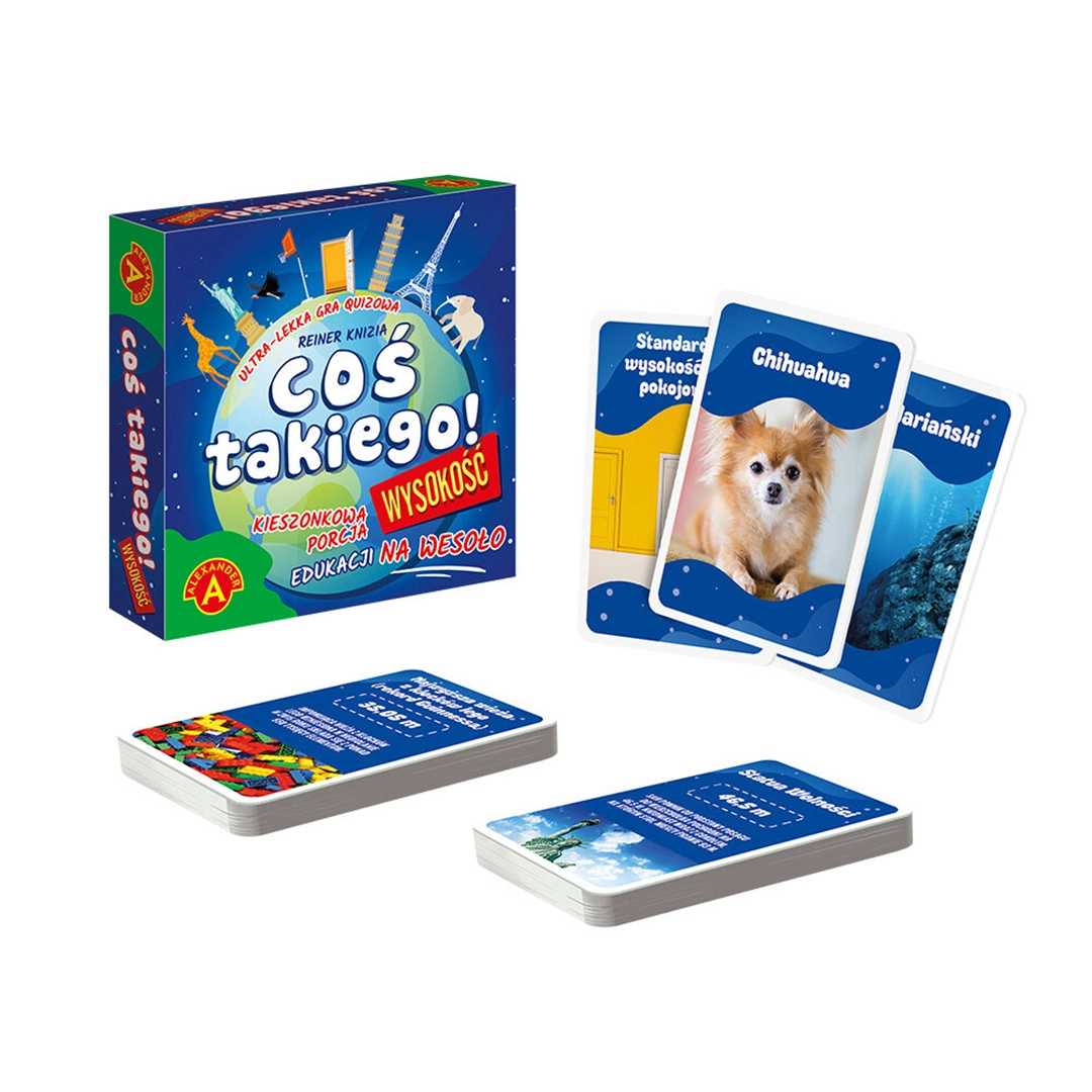 Coś takiego! Wysokość to innowacyjna gra quizowa, która zabierze Cię w fascynującą podróż po świecie wysokości. Czy wiesz, co jest wyższe: żyrafa czy aktualny rekord świata w skoku o tyczce? A może zastanawiałeś się, jak Krzywa Wieża w Pizie wypada w porównaniu z najwyższym drzewem w Polsce? Ta gra pozwoli Ci na porównywanie, ocenianie i zgadywanie wysokości różnych obiektów, dostarczając przy tym mnóstwo ciekawostek o Polsce i świecie. Wszystko to w lekkiej i przyjemnej formie, która bawi i uczy jednocześnie.