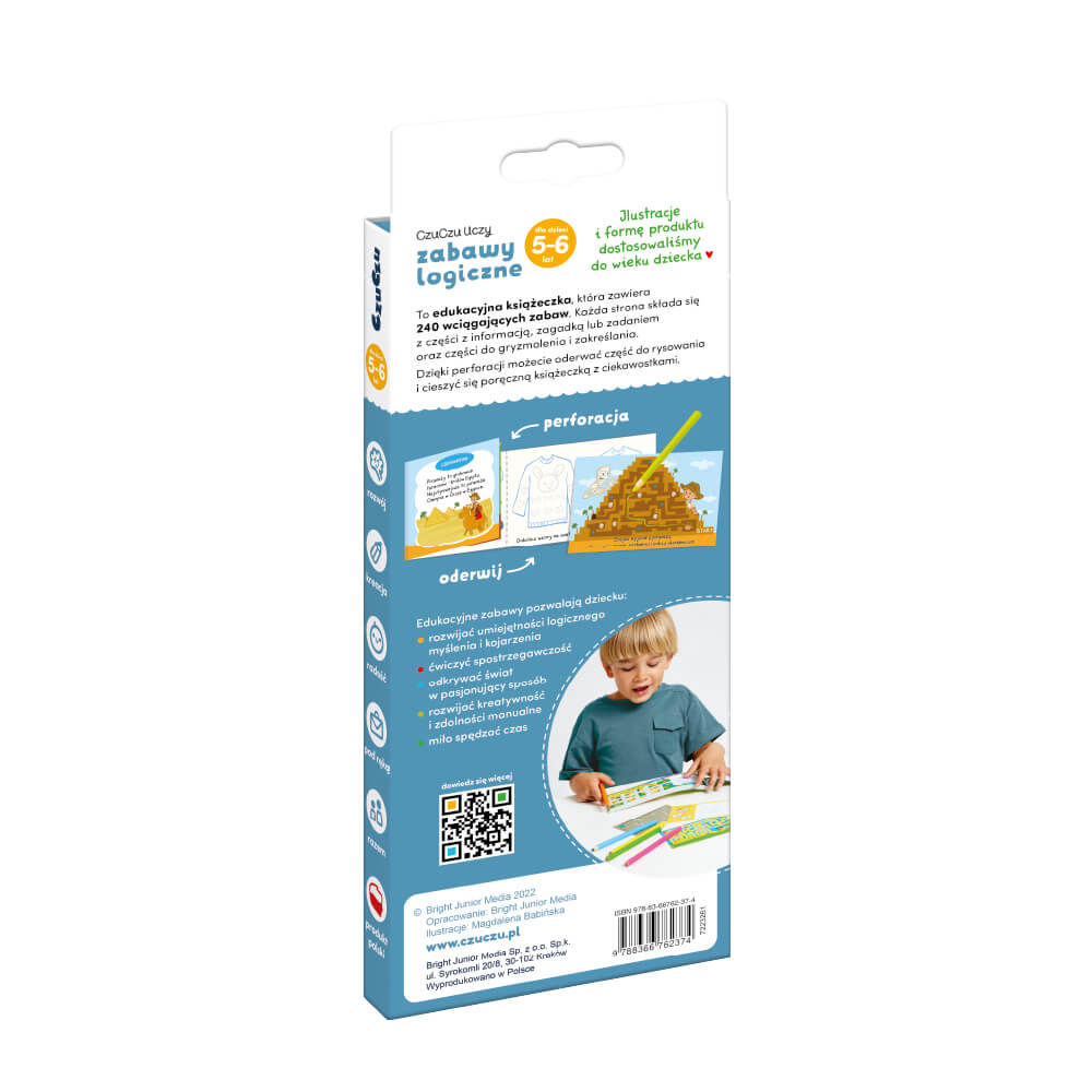 CzuCzu to polska marka, której zaufały tysiące rodziców, pedagogów i specjalistów. Jej materiały edukacyjne wyróżniają się wysoką jakością, atrakcyjną formą i zgodnością z etapami rozwoju dziecka. „Zabawy logiczne 5–6” to kolejny świetny przykład tego, jak mądrze łączyć zabawę z edukacją.