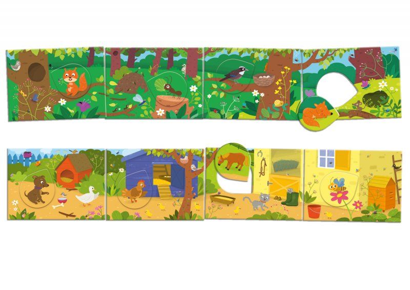 W grze uczestnicy mają za zadanie ułożyć plansze, aby przedstawiły dwa scenariusze – tajemniczy las i pełne życia gospodarstwo. Następnie, poprzez dopasowanie zwierzątek do ich domków, gracze uczą się, jakie środowisko jest naturalnym habitatem dla każdego z nich. Dodatkowe wyzwanie stanowi odnalezienie cienia należącego do każdego zwierzątka, co jeszcze bardziej angażuje w zabawę i pozwala ćwiczyć zdolności logicznego myślenia.