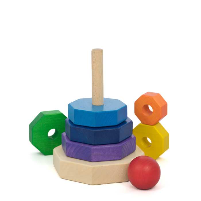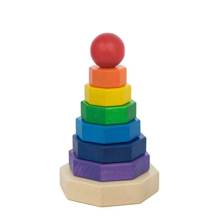 Drewniana wieża z ośmiokątnych tęczowych klocków - Tarnawa 1+