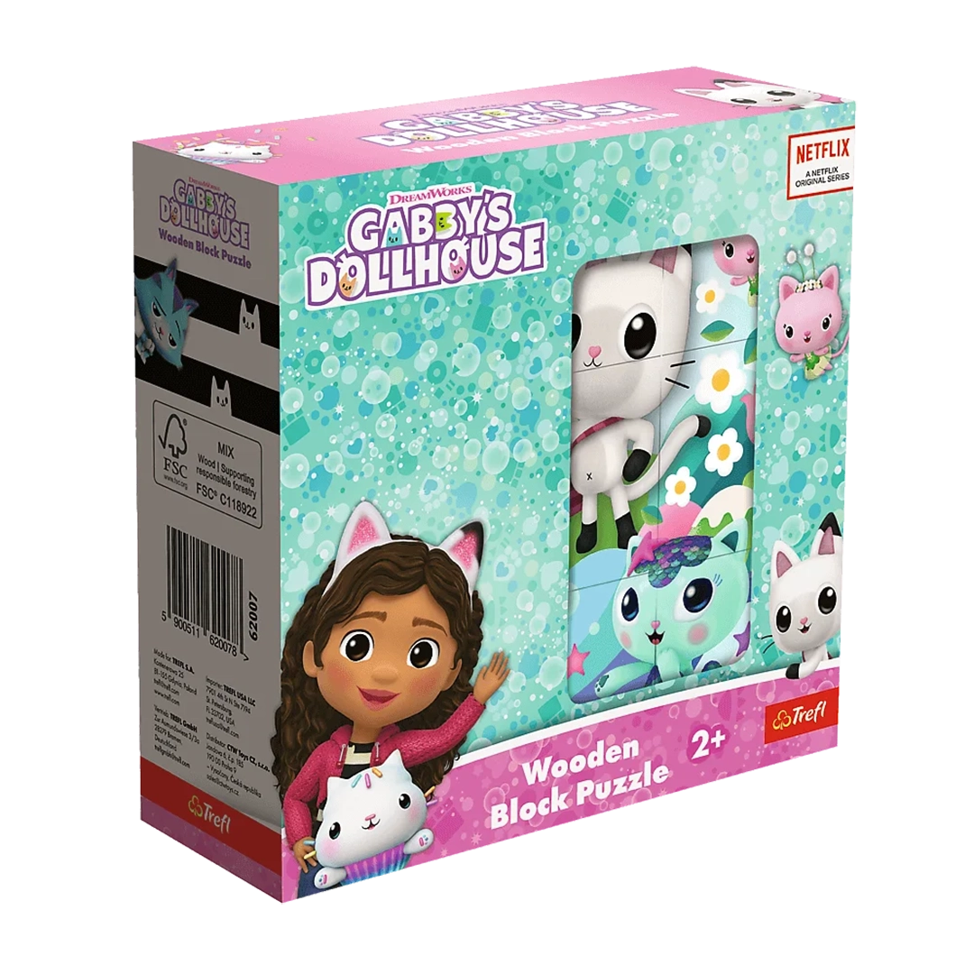 Informacje o produkcie Drewniane Klocki Puzzle Koci Domek Gabby 2+
