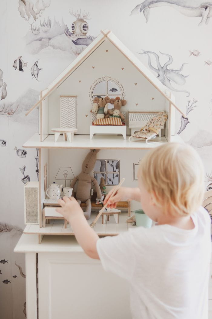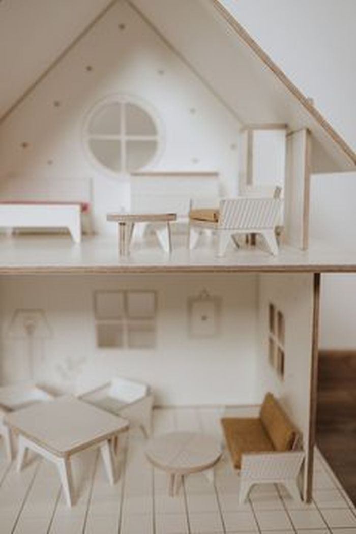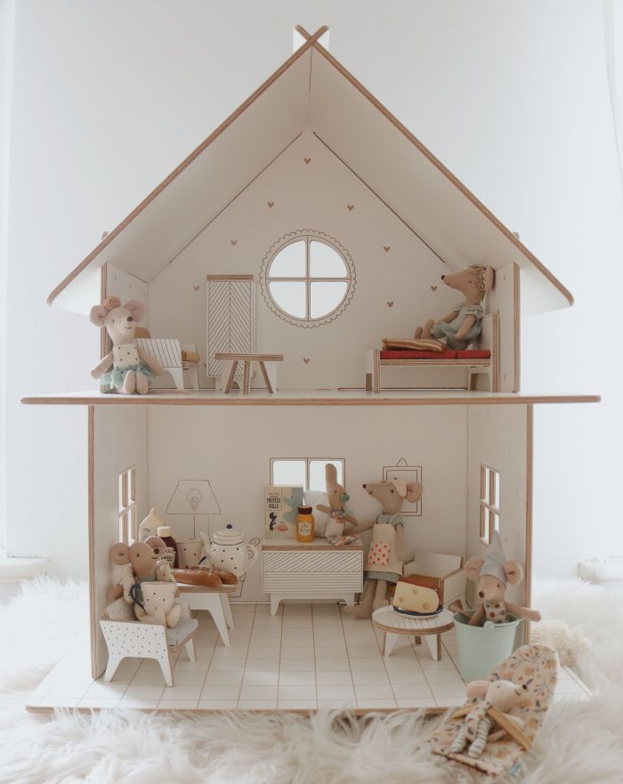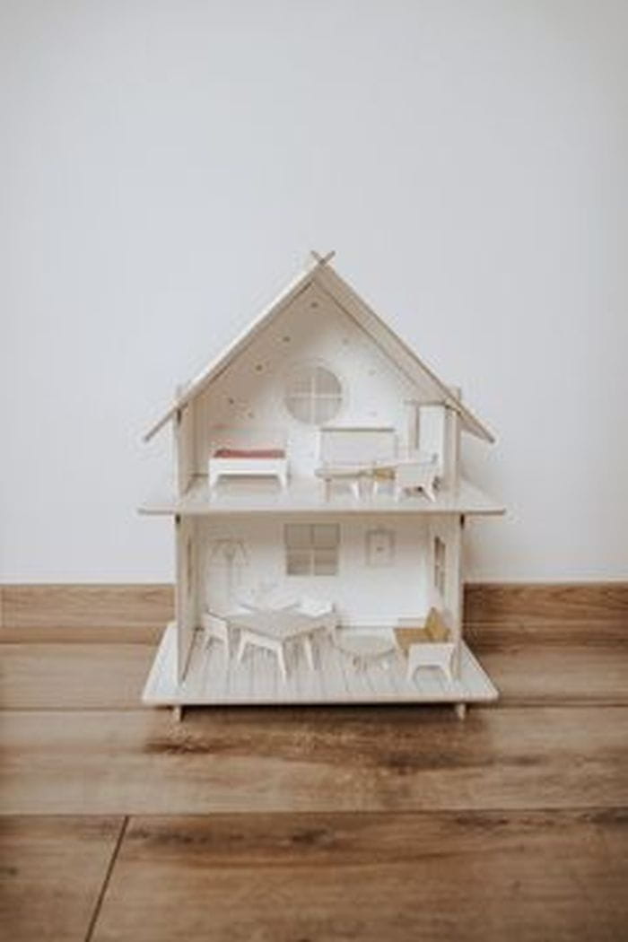 Drewniany domek dla lalek z mebelkami