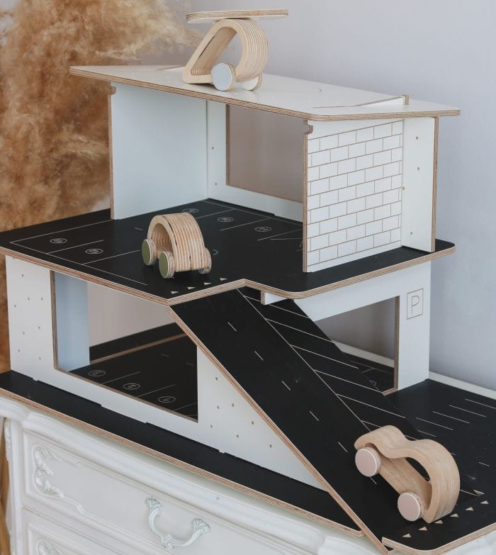 Drewniany parking garaż dla samochodów zabawka dla dzieci - Milin 3+