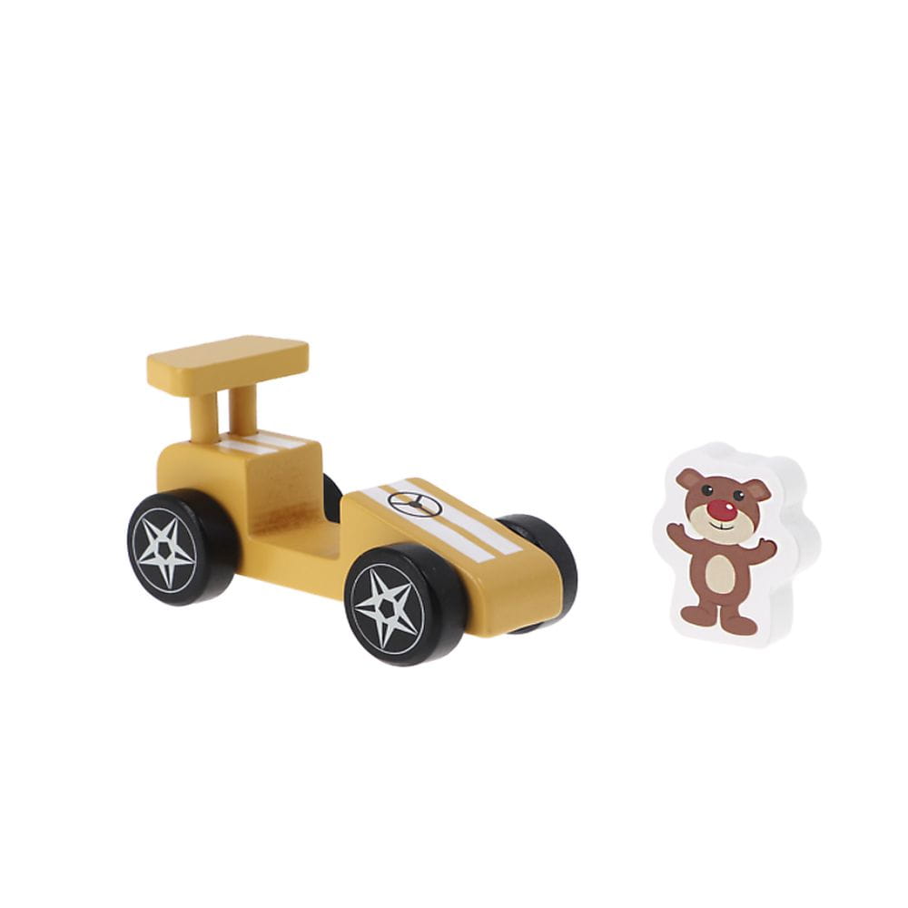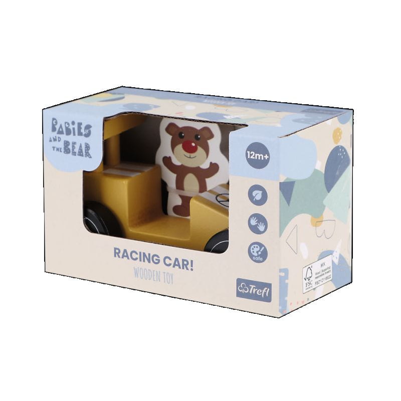 Drewniany samochodzik F1. Racing car Yellow - Bobaski i Miś - TREFL 1+