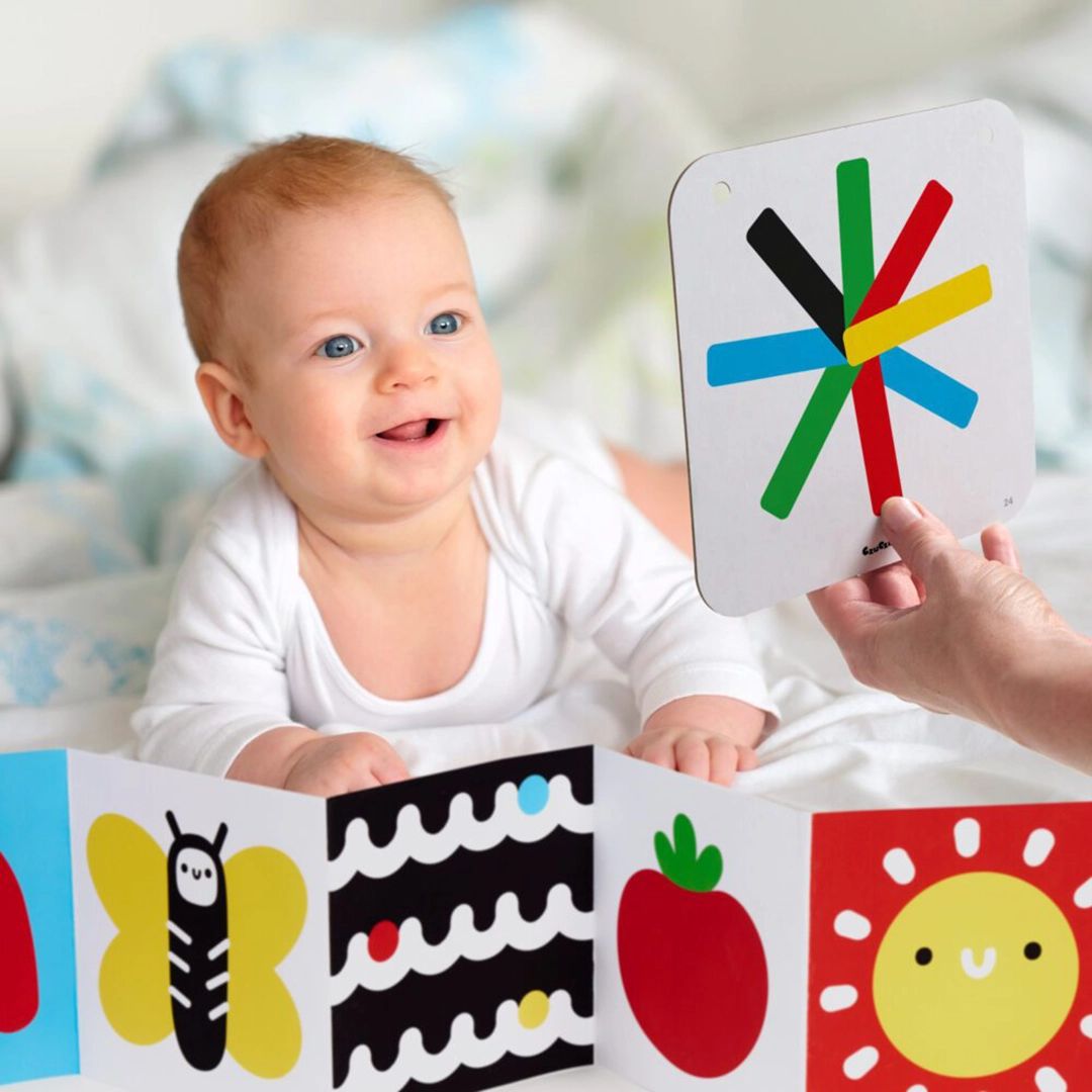 - Percepcję wzrokową – kontrastowe ilustracje pomagają niemowlętom skupić wzrok i rozwijać zdolność rozróżniania kształtów oraz wzorów.