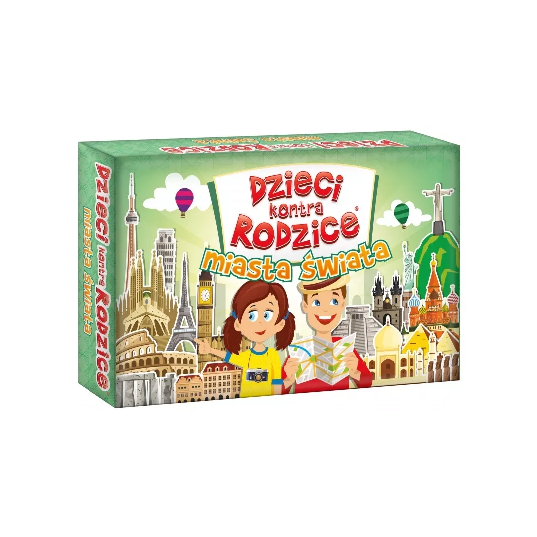 Dzieci kontra Rodzice. Miasta świata to edukacyjna gra karciana, która zabiera uczestników w podróż do najbardziej znanych miast świata. Gra została przygotowana przez wydawnictwo Kangur i jest przeznaczona dla dzieci od 7 lat. To doskonała okazja do wspólnej zabawy i nauki geografii, kultury oraz ciekawostek związanych z miastami z różnych zakątków świata.