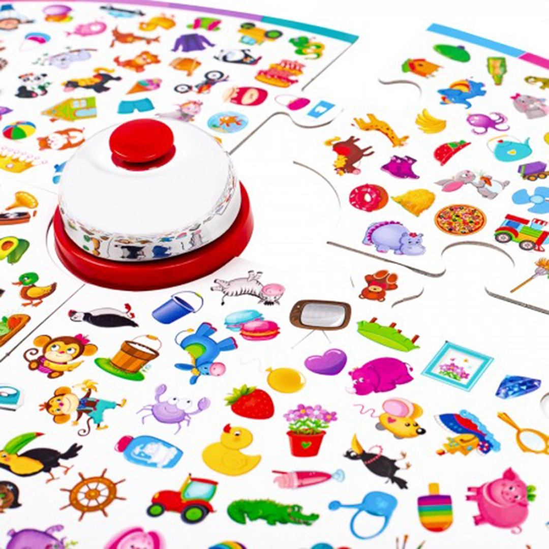 Rozgrywka opiera się na szybkim odnajdywaniu zgodności pomiędzy obrazkami na kartach i planszy. Gracze kolejno odkrywają fiszki i starają się jak najszybciej znaleźć pasujący element. Kluczowy moment następuje wtedy, gdy uczestnik zauważy dopasowanie – musi błyskawicznie nacisnąć dzwonek i wskazać właściwy obrazek. Ten, kto zrobi to pierwszy i poprawnie, zdobywa fiszkę. Wygrywa osoba, która zbierze ich najwięcej.