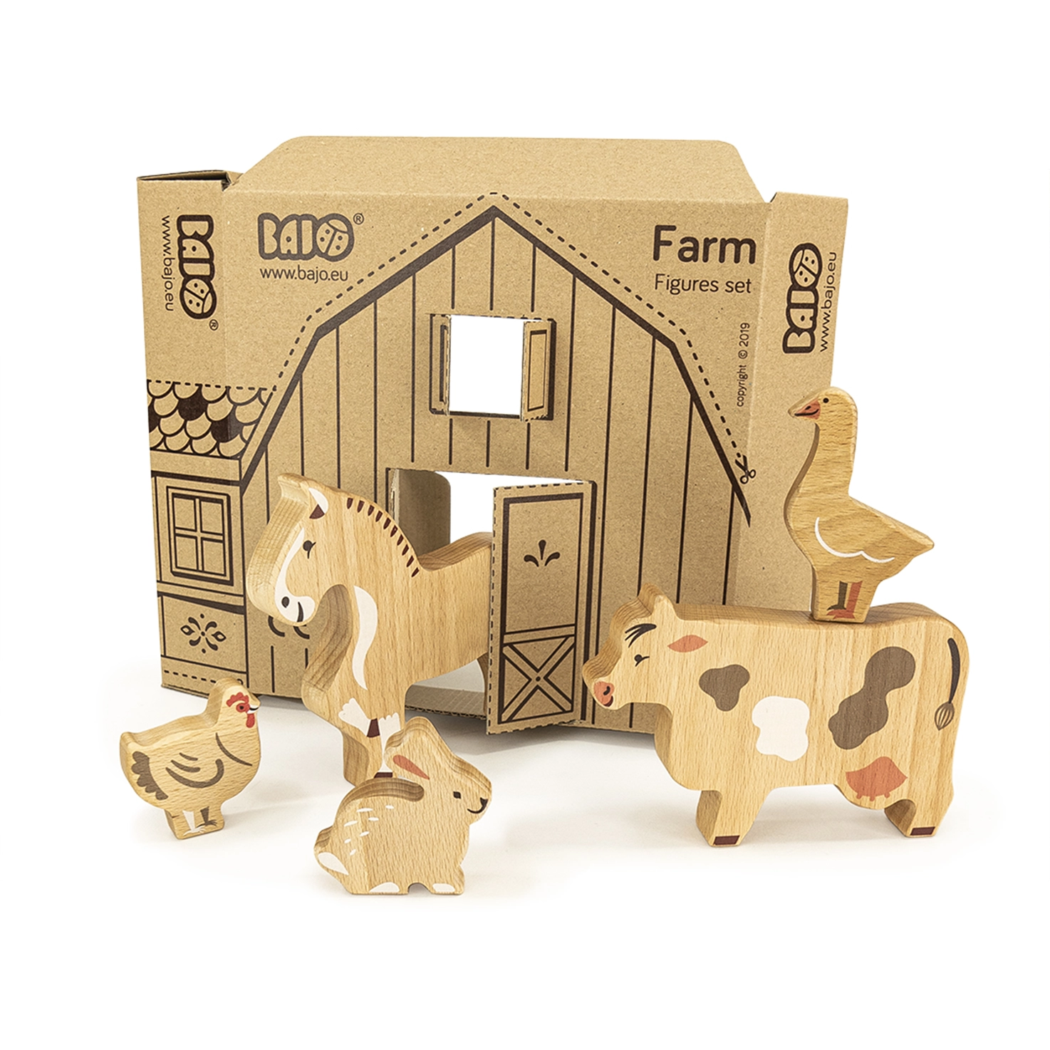 Zestaw drewnianych figurek zwierząt gospodarskich Bajo zawiera 14 figurek idealnych do zabawy i nauki. Dla dzieci od 1,5 roku.