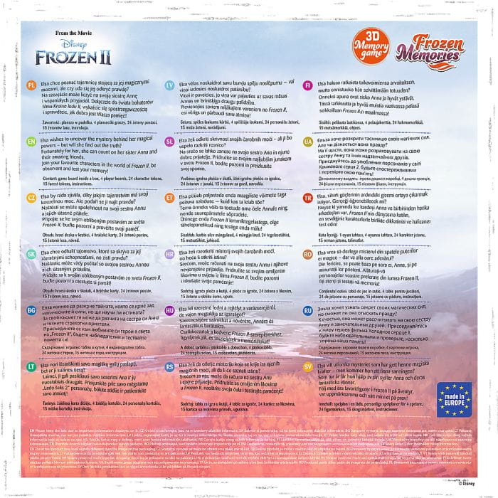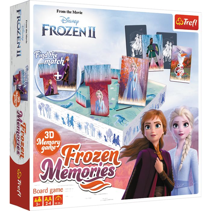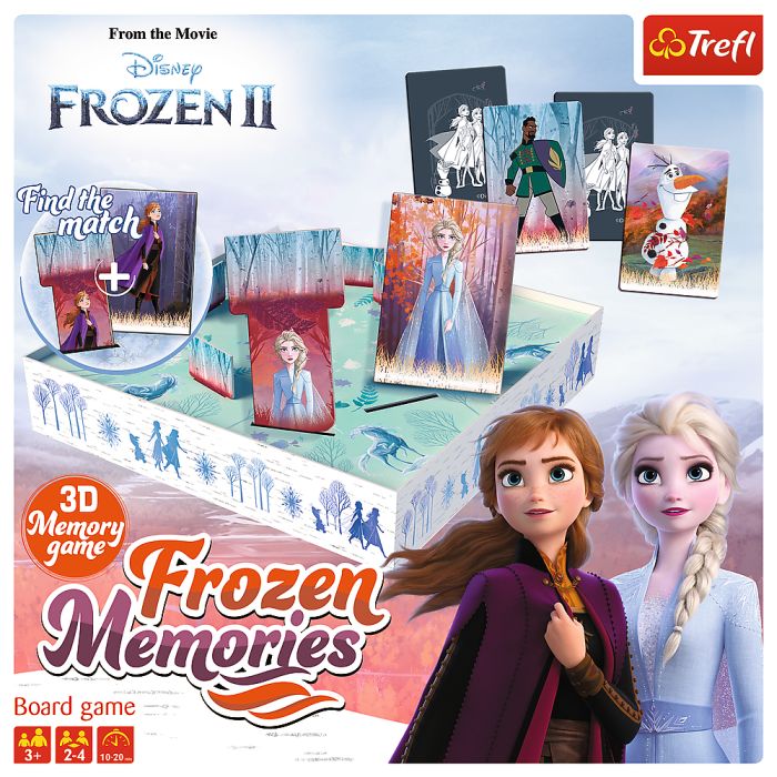 Zapamiętywanie i spostrzegawczość za pomocą gry „Frozen Memories” mogą ćwiczyć już maluchy od 3 roku życia. Przy okazji rozgrywki, dziecko rozwija cały czas motorykę małą: wysuwanie plansz z pudełka wymaga precyzji i sprawnego chwytania. Kiedy pociecha znajdzie już wszystkie pary, Waszym oczom ukaże się makieta z wizerunkami bohaterów – świetna dekoracja pokoju dziecięcego!