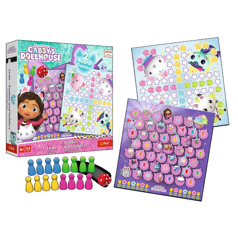 Gra planszowa Trefl - 2w1 Chińczyk oraz Węże i drabiny - Koci Domek Gabi