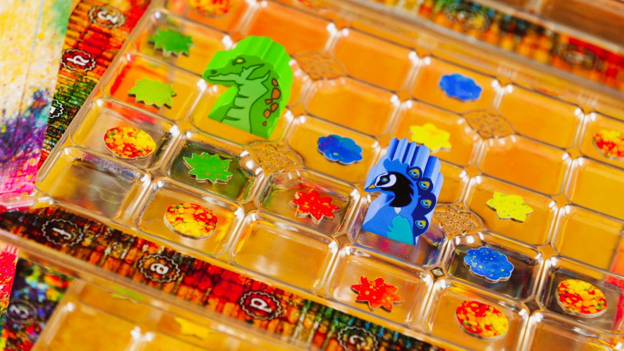 No właśnie: kolorowy proszek symbolizują żetony, którymi trzeba zająć jak najwięcej przestrzeni na trzypoziomowej planszy. Możliwe ruchy definiują zasady gry i dodatkowe karty. Gracz może zapełniać planszę swoim kolorem, a nawet… „rzucać” nim w innych graczy, przejmując ich pola. Możliwe do wykonania ruchy determinują karty, przedstawiające ułożenie żetonów, które musi odwzorować gracz. Ten, może jednak obrócić kartę… i umieścić żetony w najbardziej odpowiadającej sobie płaszczyźnie. Gdyby tego było mało: grę urozmaica ruch wspinania się na wyższe poziomy czy gromadzenie specjalnych żetonów-słodyczy.