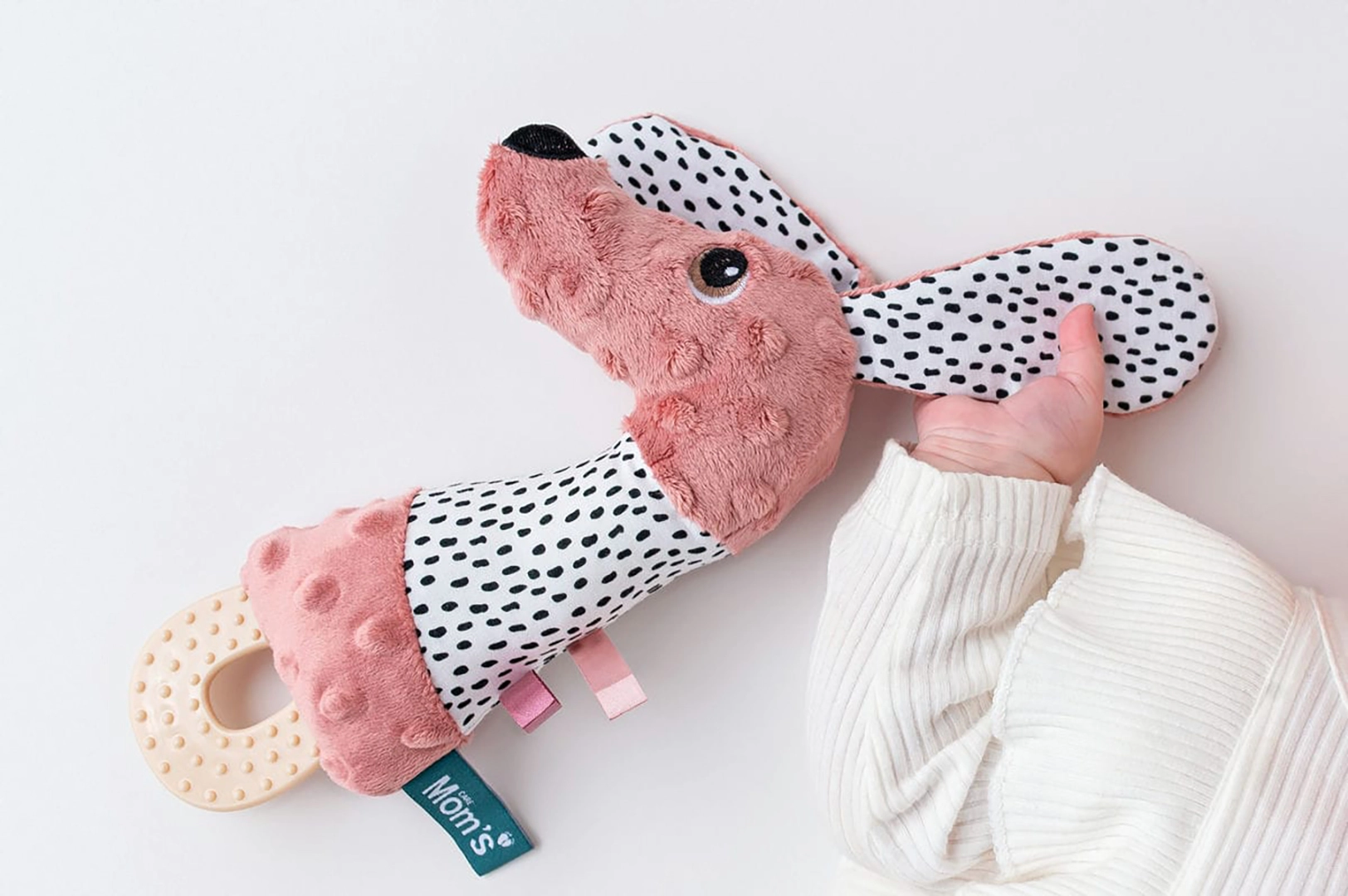 Jamiś Piszczek z Gryzakiem różowy to wyjątkowa zabawka sensoryczna i gryzak edukacyjny dla niemowląt. Łączy w sobie miękką przytulankę, piszczałkę oraz gryzak silikonowy, dzięki czemu wspiera rozwój zmysłów, motorykę małą i sprawdza się idealnie podczas ząbkowania.