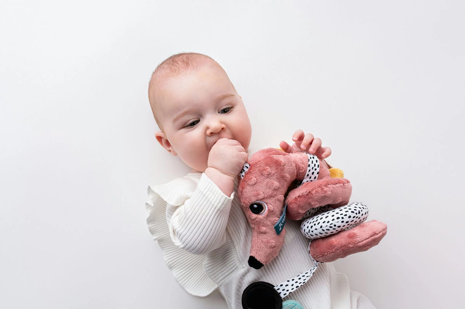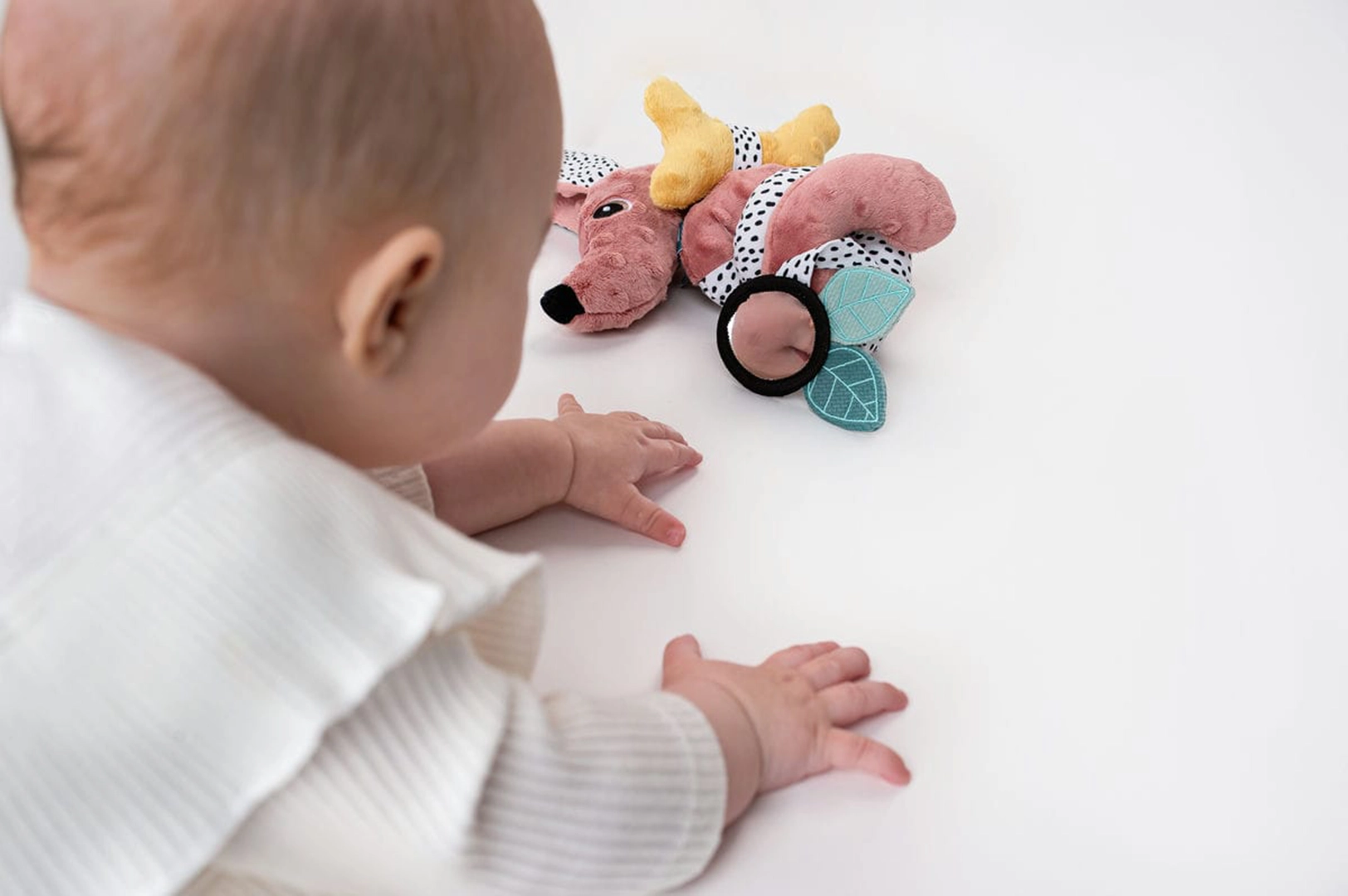 - Rozwój słuchu dzięki bezpiecznym grzechotkom umieszczonym w spirali.