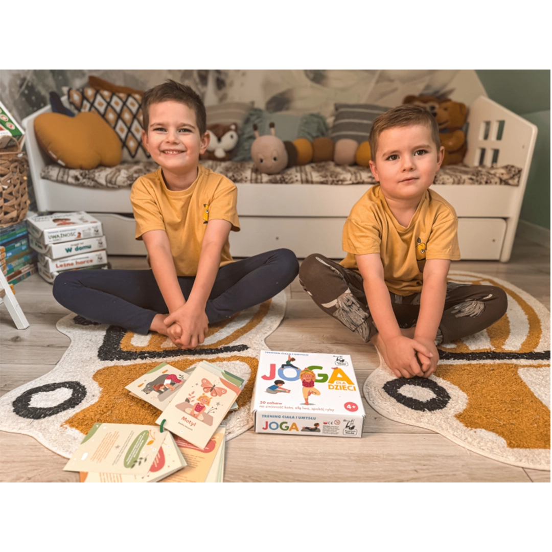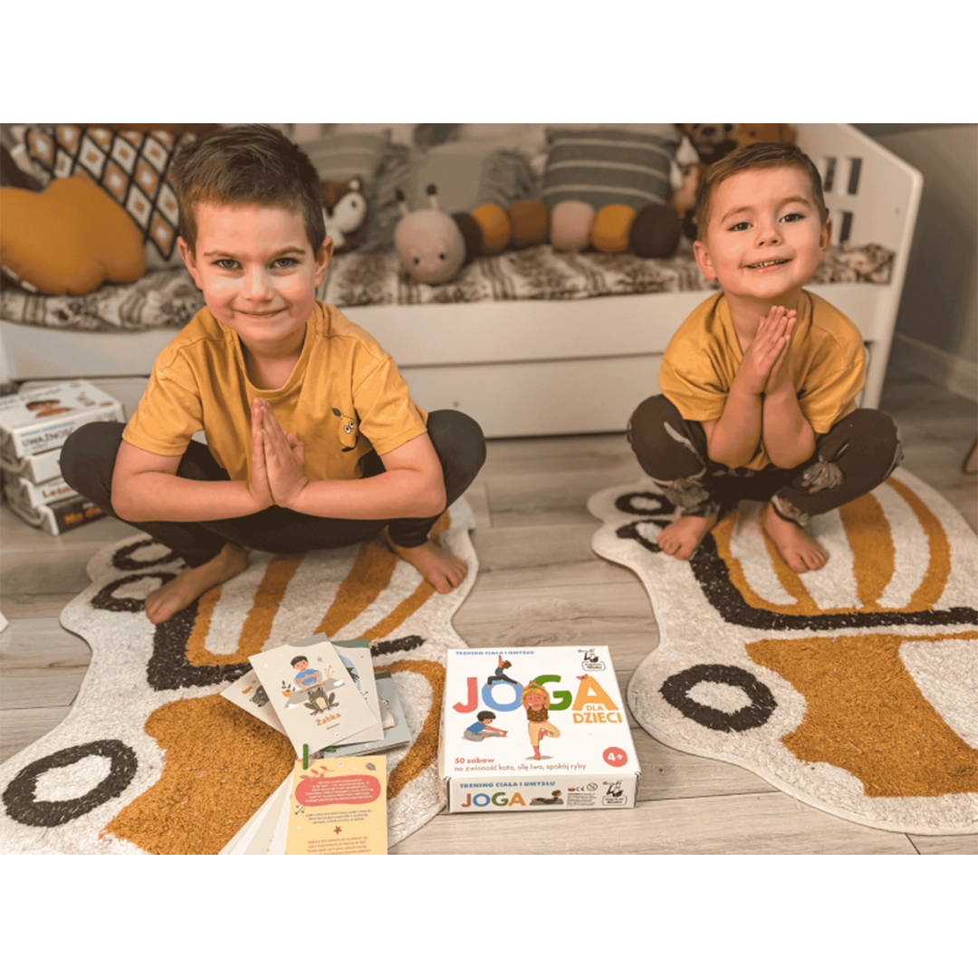Zestaw sprawdzi się zarówno w warunkach domowych, jak i w przedszkolach, szkołach czy podczas zajęć terapeutycznych. Joga staje się tu nie tylko aktywnością fizyczną, ale formą troski o dobre samopoczucie dziecka – już od najmłodszych lat.