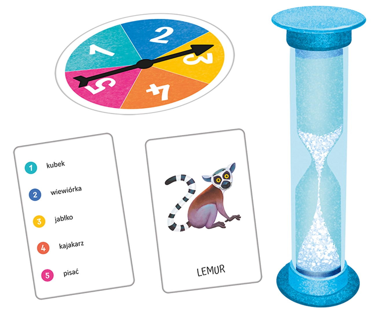 Dodatkowym elementem urozmaicającym rozgrywkę jest koło losujące, które wprowadza element nieprzewidywalności i jeszcze więcej emocji. Klepsydra natomiast odmierza czas, mobilizując graczy do szybkiego działania i podejmowania decyzji. Dzięki temu gra towarzyska staje się jeszcze bardziej angażująca i dynamiczna.