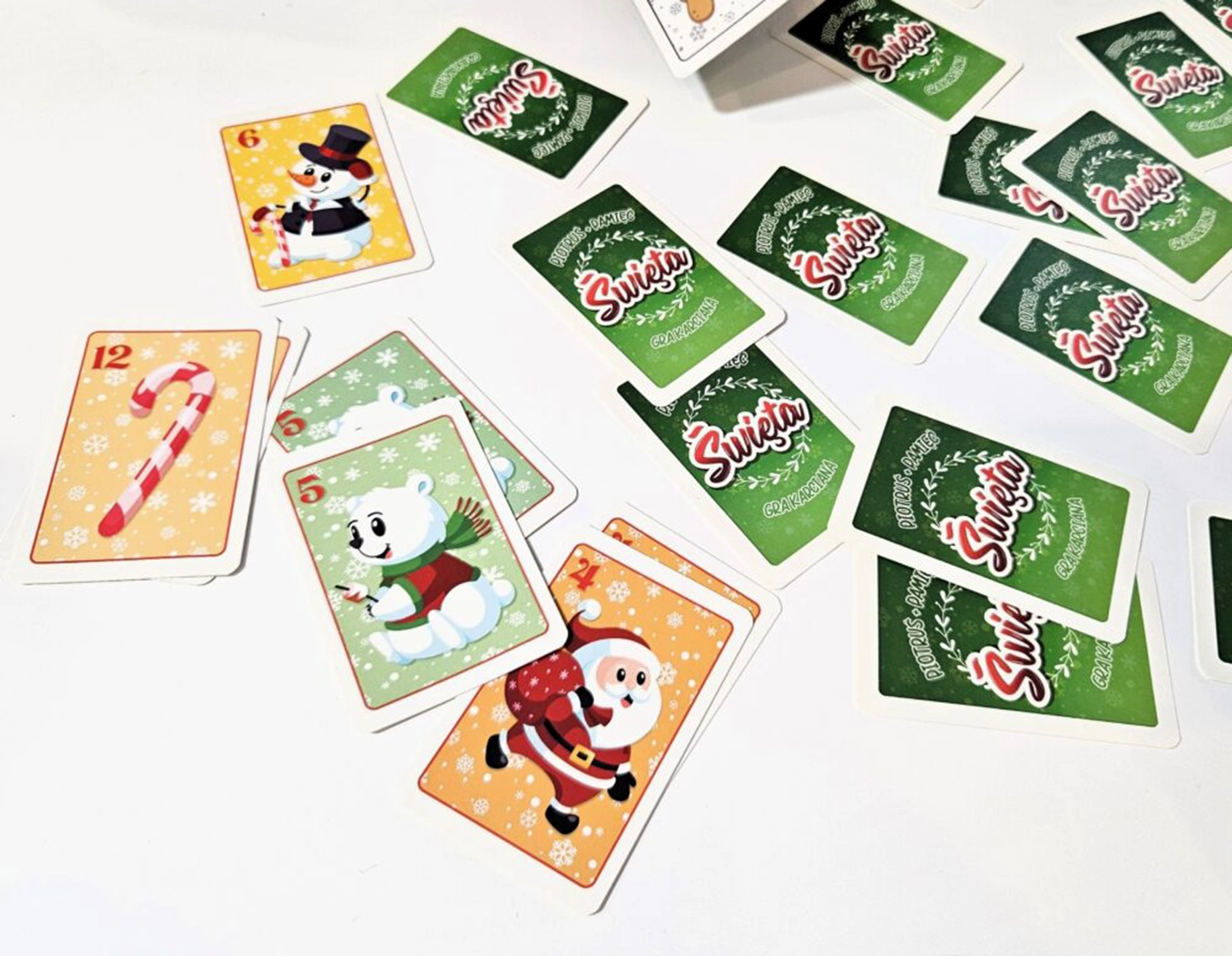 Karty Piotruś Pamięć Święta to wyjątkowa gra karciana dla dzieci, idealna na zimowe wieczory i świąteczne zabawy dla dzieci. Dzięki bożonarodzeniowym motywom wprowadza najmłodszych w klimat Świąt, oferując przy tym niezapomnianą rozrywkę dla całej rodziny. Karty przedstawiają motywy związane z Bożym Narodzeniem, jak Mikołaj, choinka czy prezenty, co czyni z nich świetny pomysł na prezent świąteczny dla dziecka.
