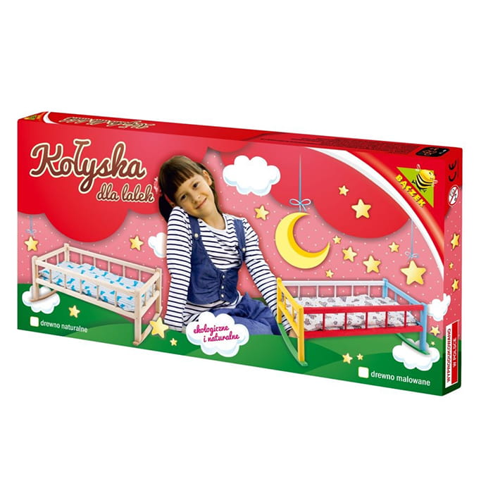 Bączek duża kołyska dla lalek przypadnie do gustu każdej opiekuńczej dziewczynce, która uwielbia bawić się swoimi lalkami i pluszakami. Zabawka jest stylowa, solidna i wykonana z dużą dbałością o detale. Posłuży dziecku przez wiele lat i będzie źródłem niezliczonych uśmiechów oraz radości. Naśladowanie zachowań matki podczas zabawy przyczyni się także do rozwoju wyobraźni, troskliwości, empatii i umiejętności wyrażania uczuć. Prosta stylistyka wpasuje się w każdy pokój dziecięcy i jest to świetny pomysł na prezent dla kilkuletniej dziewczynki, która regularnie opiekuje się swoimi “podopiecznymi”. Kołyska jest wykonana z naturalnego drewna i pomieści lalkę o długości do 55 centymetrów. W zestawie znajduje się również dwustronny komplet pościeli: materac, poduszeczka i kołderka. Zabawka przeznaczona jest do samodzielnego montażu, który jest bardzo prosty i zajmuje kilka minut. Produkt renomowanej polskiej marki Bączek. Zabawka nieodpowiednia dla dzieci poniżej trzeciego roku życia.
