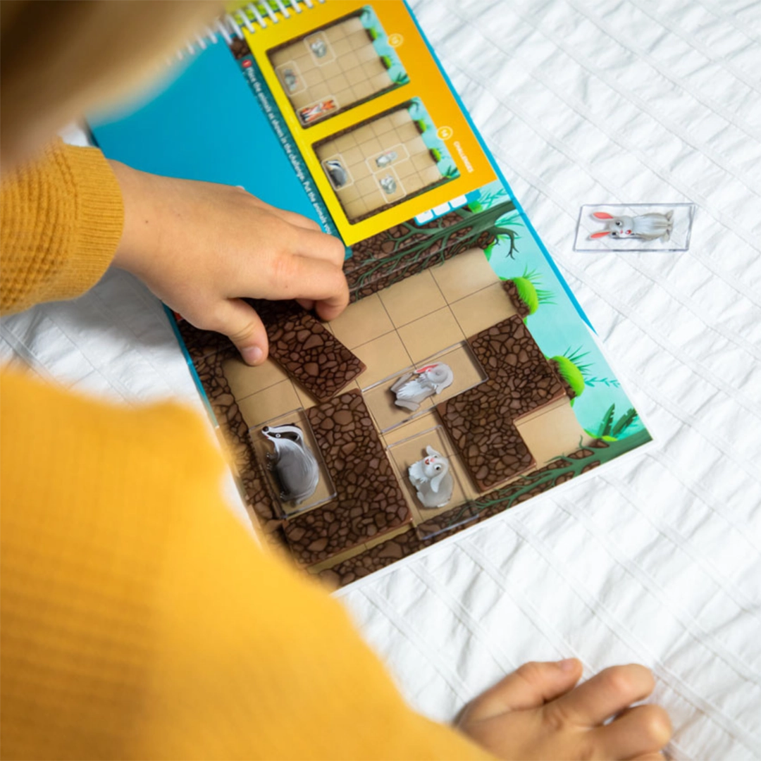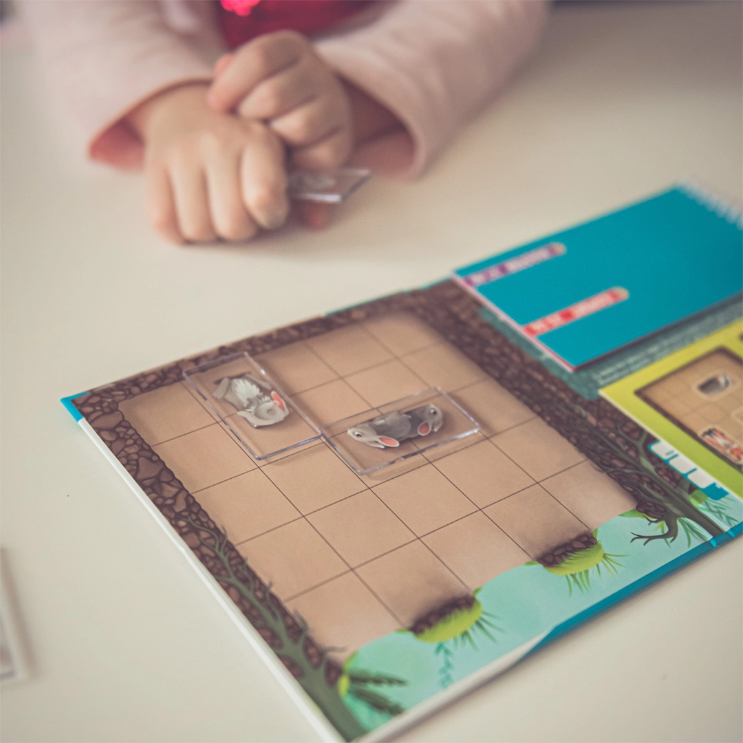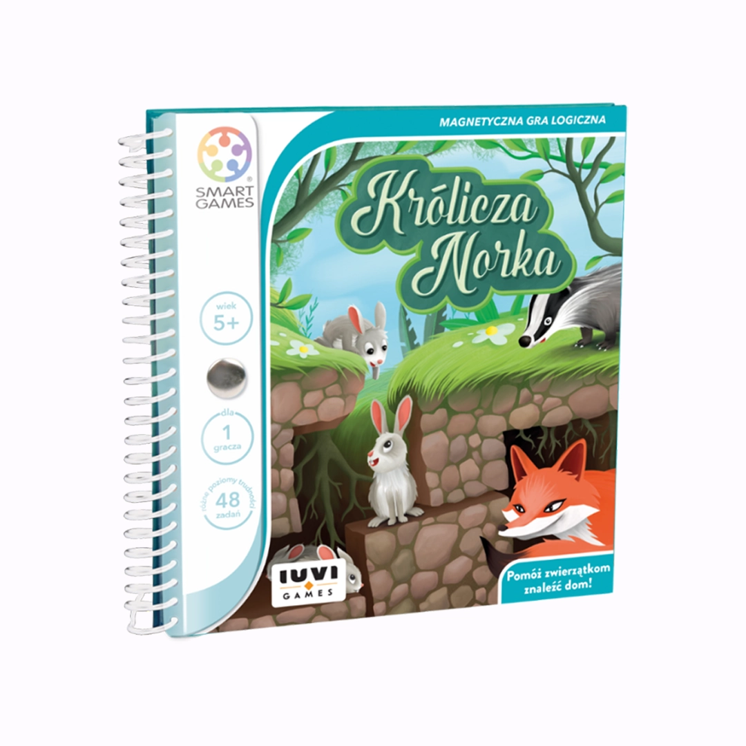 Królicza Norka to układanka logiczna, która wymaga od gracza przemyślanych ruchów i strategicznego planowania. Zadaniem dziecka jest ułożenie magnetycznych elementów w taki sposób, aby królik mógł bezpiecznie schronić się w swojej norze. Każde wyzwanie wymaga innego rozwiązania, co sprawia, że gra nie tylko bawi, ale również uczy myślenia przyczynowo-skutkowego.