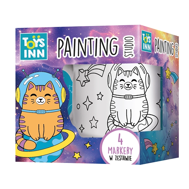 Kubek do kolorowania + 4 markery - Kot w kosmosie - Stnux 5+