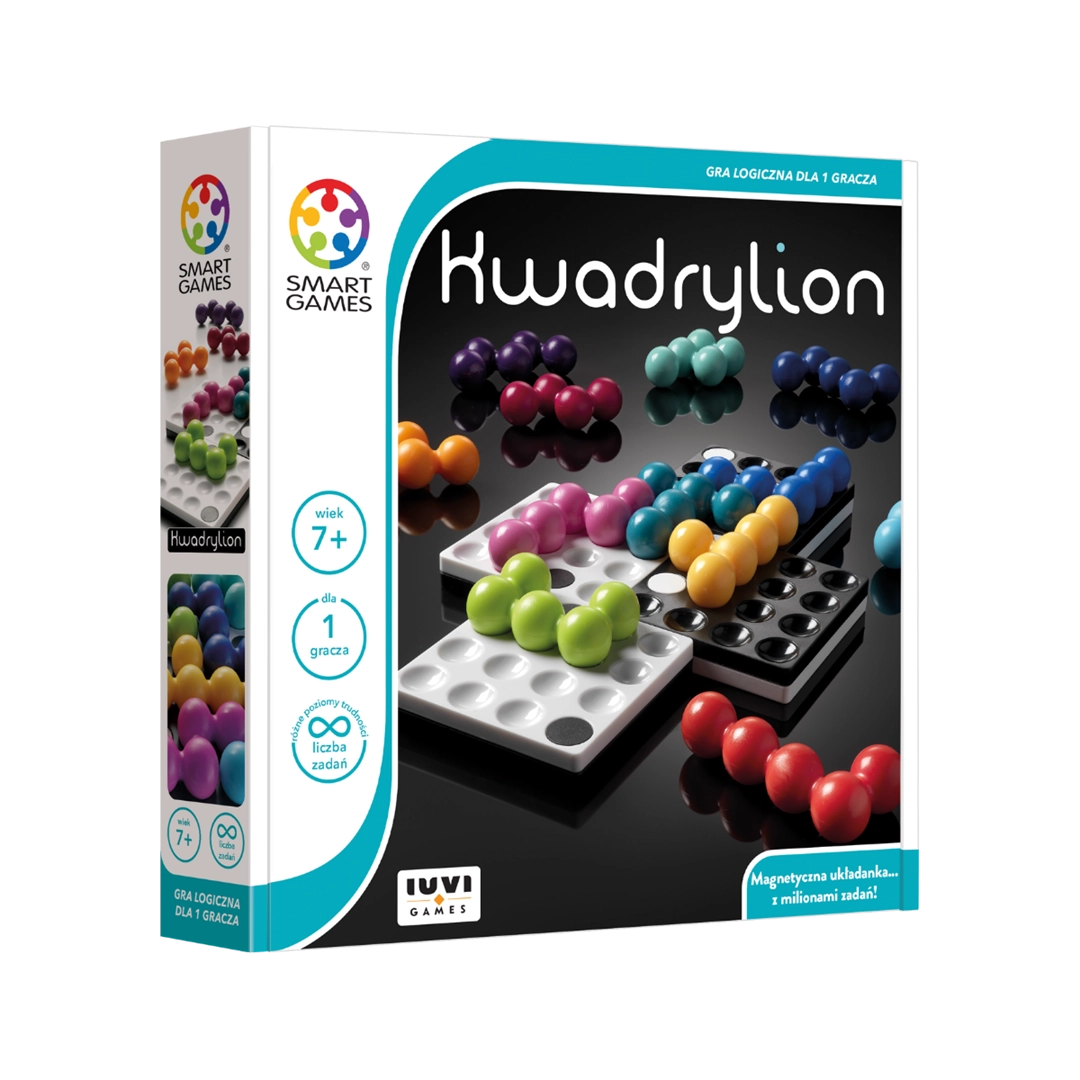 Kwadrylion to innowacyjna gra logiczna z kolekcji Smart Games od IUVI Games, która zapewnia graczom niezliczone godziny angażującej rozrywki. Celem gry jest ułożenie 12 kolorowych elementów układanki na planszy złożonej z czterech magnetycznych modułów. Każda konfiguracja planszy stwarza nowe wyzwania, co sprawia, że gra nigdy się nie nudzi.