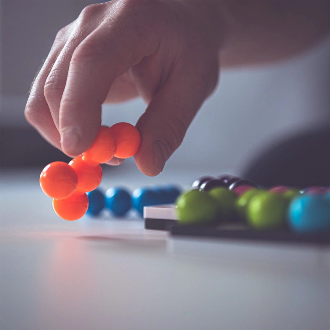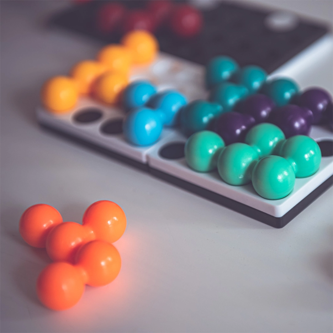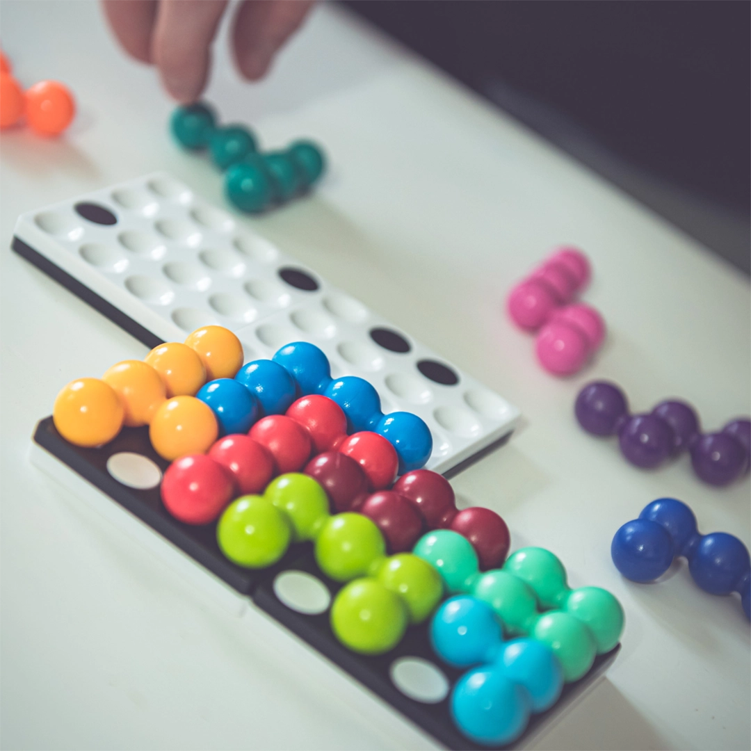 - Percepcja przestrzenna – ćwiczona poprzez manipulowanie trójwymiarowymi elementami na planszy.