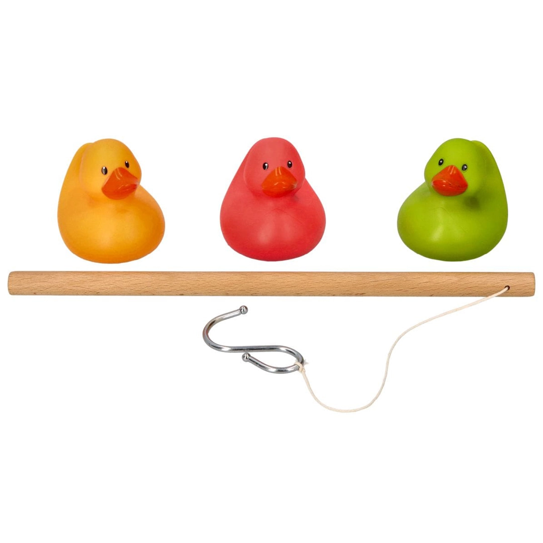 - Materiał: Kaczki wykonane z trwałego, bezpiecznego plastiku, wolnego od BPA i ftalanów; wędka wyposażona w magnetyczną końcówkę do łowienia