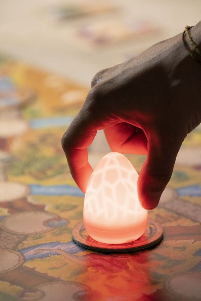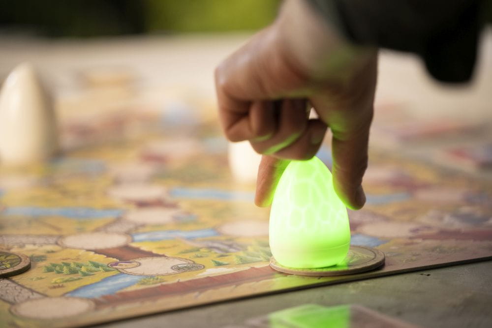 W tej grze rodzinnej, zarówno dzieci, jak i rodzice, będą mogli wziąć udział w niezwykłej przygodzie. Gracze będą zagrywać karty i przesuwać kolorowe jajka po malowniczym świecie jednorożców. Ale uwaga, gdy dotrzecie do jednej z krain, jajka odkryją swoje prawdziwe oblicza, zaświecając unikatowymi kolorami. Czy pamiętacie ich położenie i zdołacie doprowadzić je do odpowiednich miejsc?