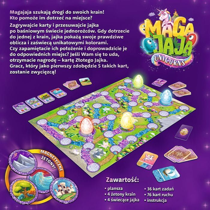 Zapewnijcie sobie fantastyczną zabawę i niezapomniany wspólny czas z grą "MagaJaja - Unicorn". Czekają na Was niezliczone przygody w magicznym świecie jednorożców!