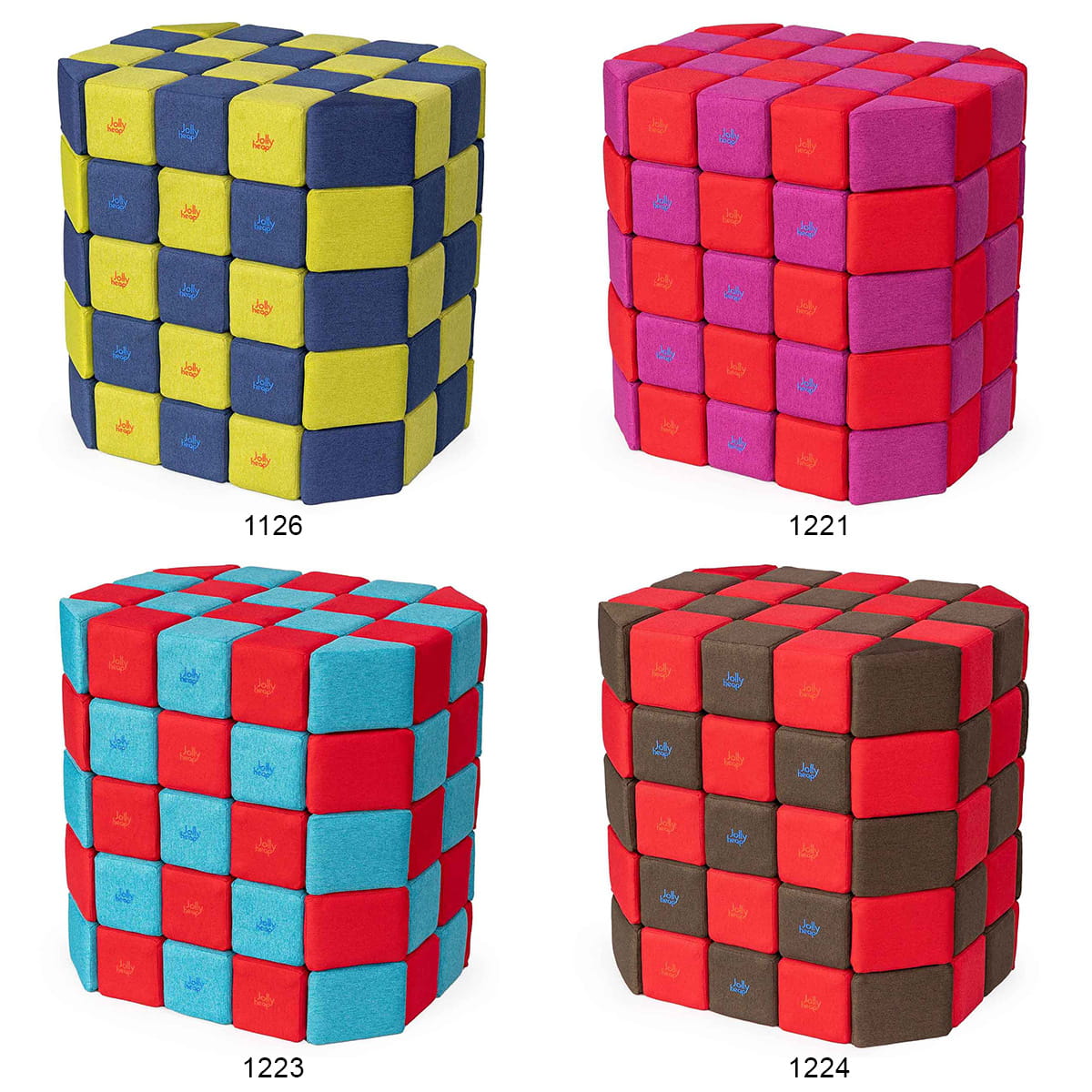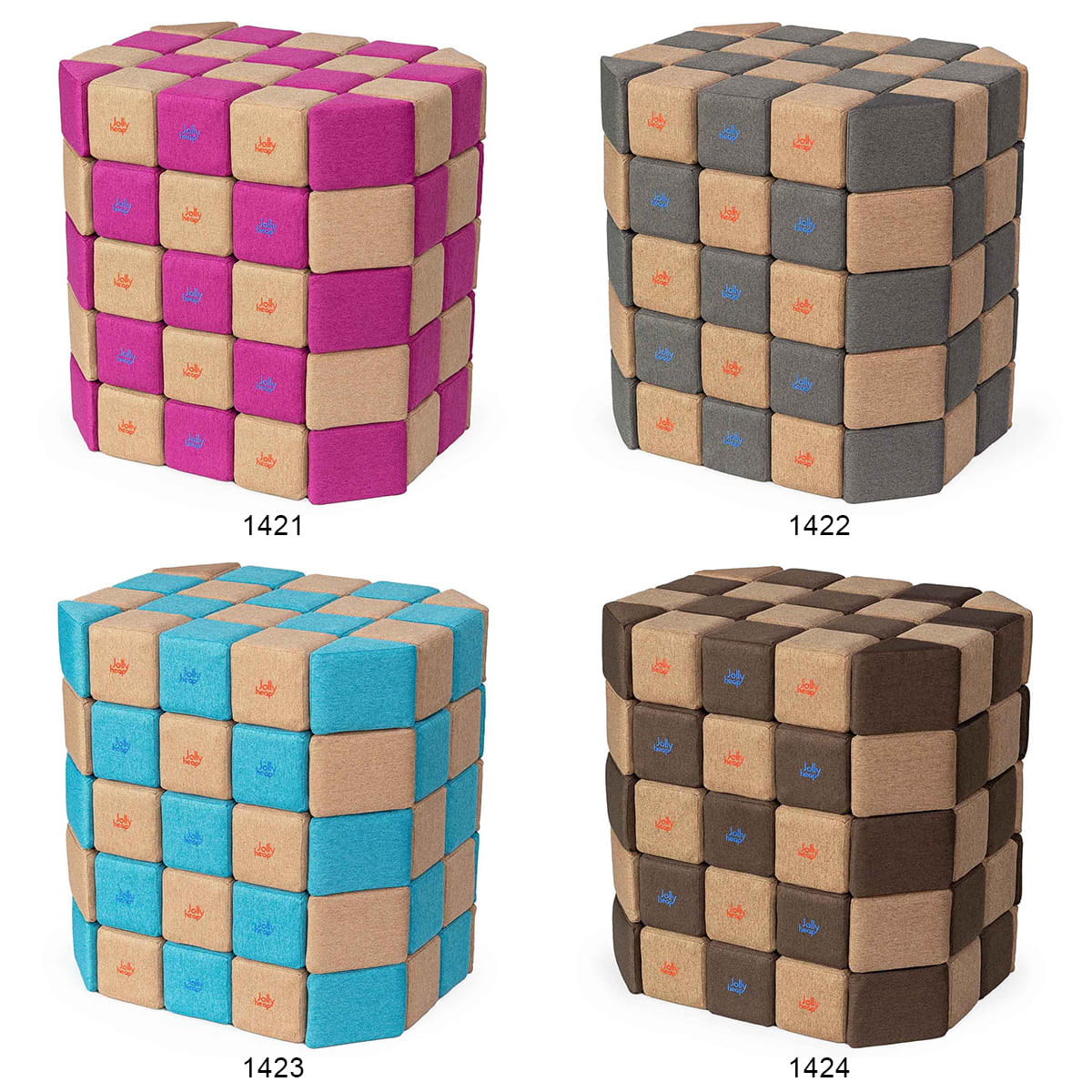 Zestaw Basic zawiera 100 sztuk klocków w 2 kształtach 70 sześcianów + 30 trójkątów oraz 36 kombinacji kolorystycznych.
