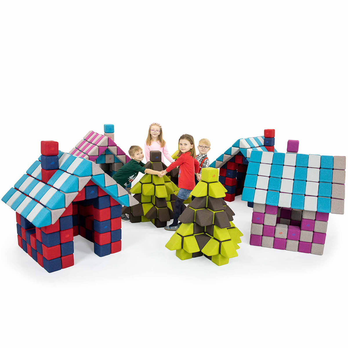 Zestaw Joy zawiera 150 sztuk klocków w 2 kształtach 100 sześcianów + 50 trójkątów oraz 36 kombinacji kolorystycznych.