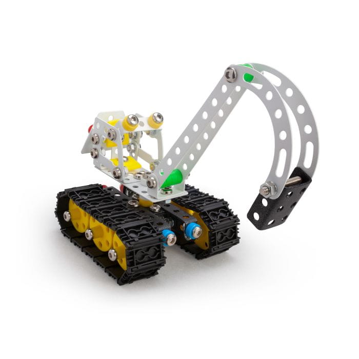 Zestaw Mały Konstruktor – Diggy zawiera 221 elementów metalowych i plastikowych, koła, gąsienice, śruby i nakrętki oraz narzędzia do montażu. To idealna zabawka edukacyjna, która rozwija logikę, kreatywność, koordynację ręka–oko i pozwala na samodzielne tworzenie trwałych modeli pojazdów.
