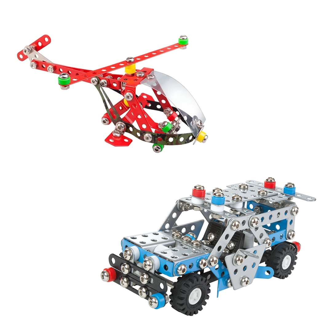 Mały Konstruktor Policja i Helikopter to wyjątkowy zestaw dwóch kreatywnych zabawek konstrukcyjnych od renomowanego producenta Alexander, który łączy zabawę z wartościową nauką oraz wspiera wszechstronny rozwój dziecka. Zestaw składa się z dwóch modeli: pojazdu policyjnego oraz helikoptera, które maluch może samodzielnie złożyć, korzystając z dołączonych narzędzi oraz szczegółowej instrukcji. Wykonane z metalowych elementów o różnych kształtach i wymiarach oraz kolorowych części z tworzywa sztucznego, te zabawki konstrukcyjne zapewniają długie godziny angażującej zabawy, a jednocześnie stają się fundamentem do rozwijania umiejętności technicznych i kreatywnego myślenia.