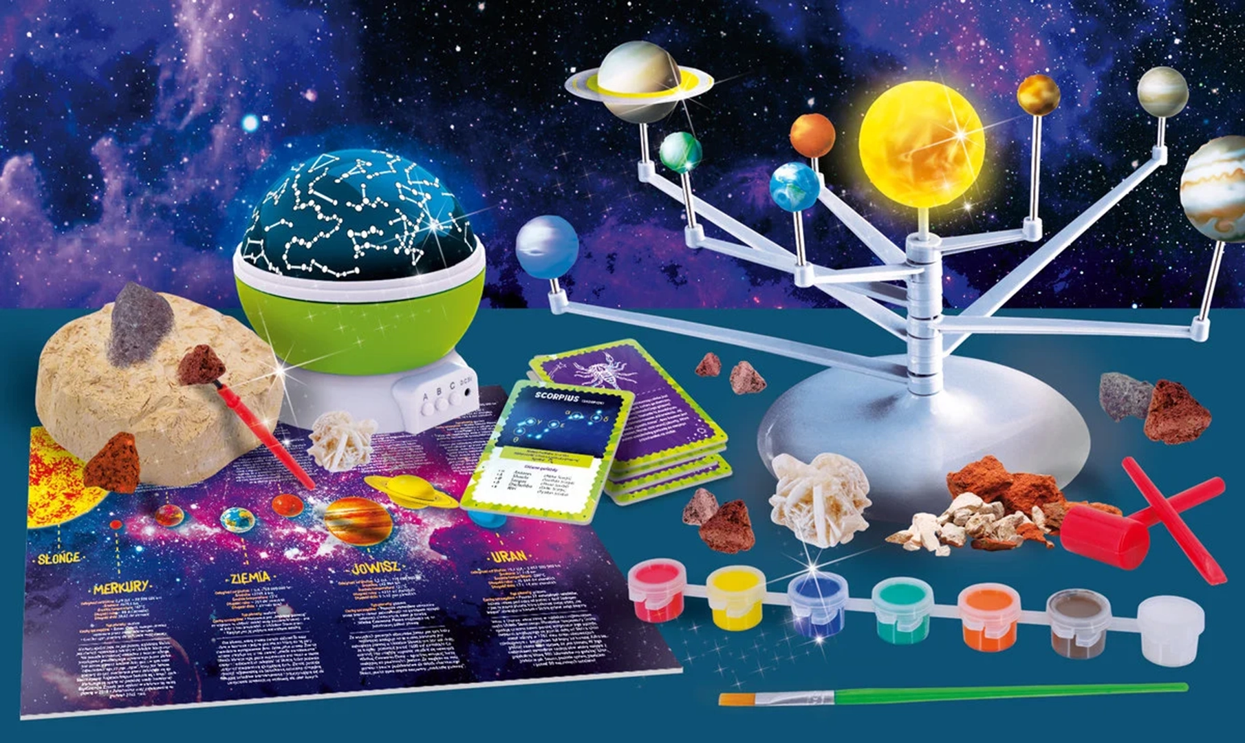 Zestaw edukacyjny do odkrywania tajemnic kosmosu, rozwijający ciekawość i umiejętności naukowe dzieci od 8 lat.
