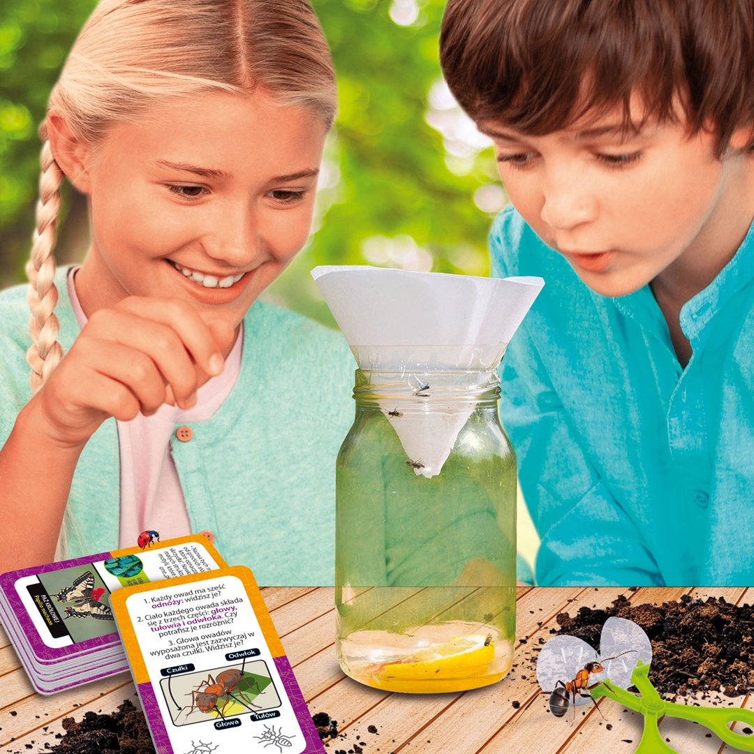 Zestaw wprowadza młodych odkrywców w świat entomologii – nauki o owadach – w przystępny i angażujący sposób. Dziecko uczy się rozpoznawać różne gatunki, obserwuje ich szczegóły oraz uczy się nazw i funkcji poszczególnych części ciała. To nie tylko edukacyjna przygoda, ale także wspaniała okazja do rozwijania pasji i umiejętności poznawczych.